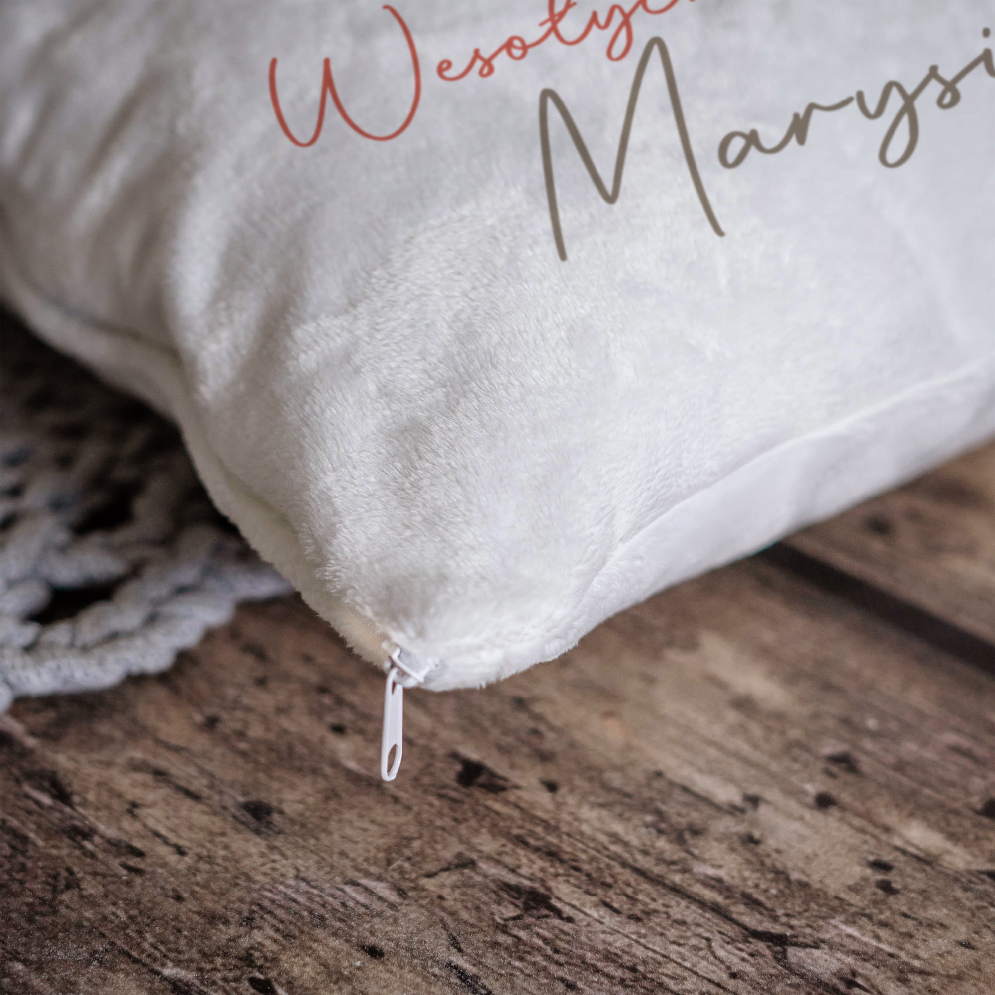 ⭐MIĘCIUTKA PLUSZOWA PODUSZKA Z KOLOROWYM ŚWIĄTECZNYM NADRUKIEM I Z IMIENIEM DZIECKA⭐