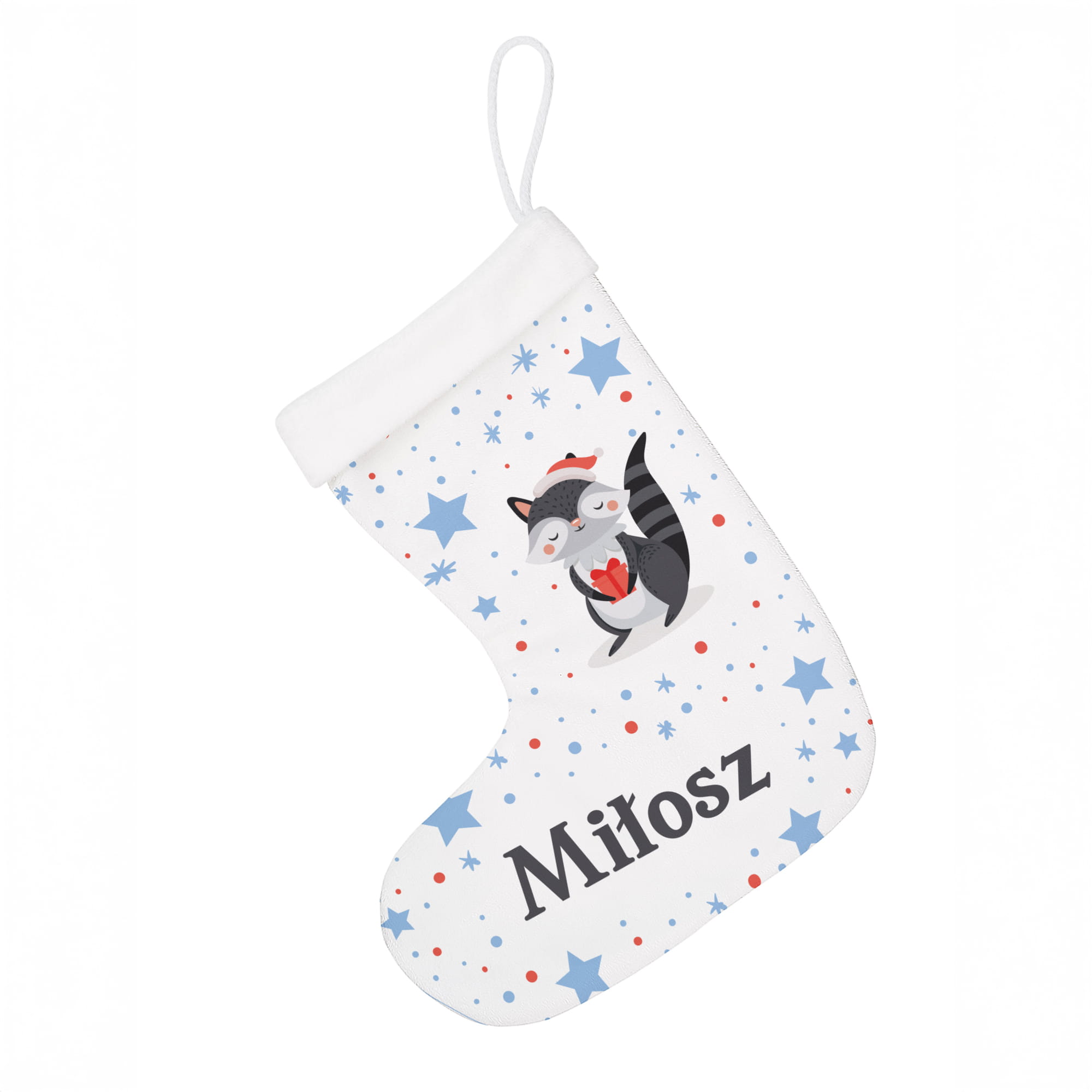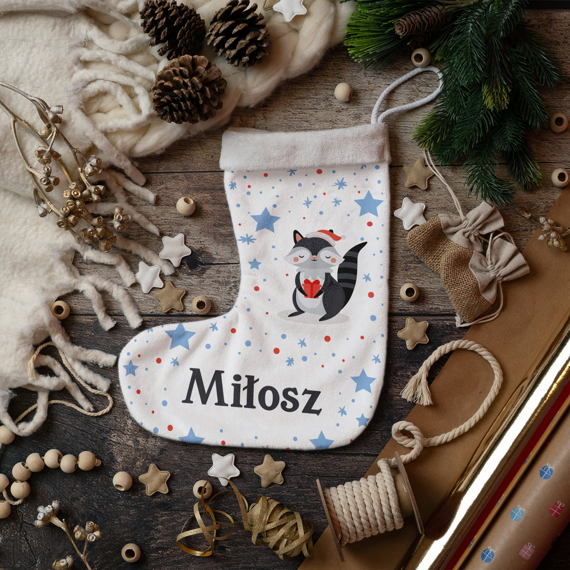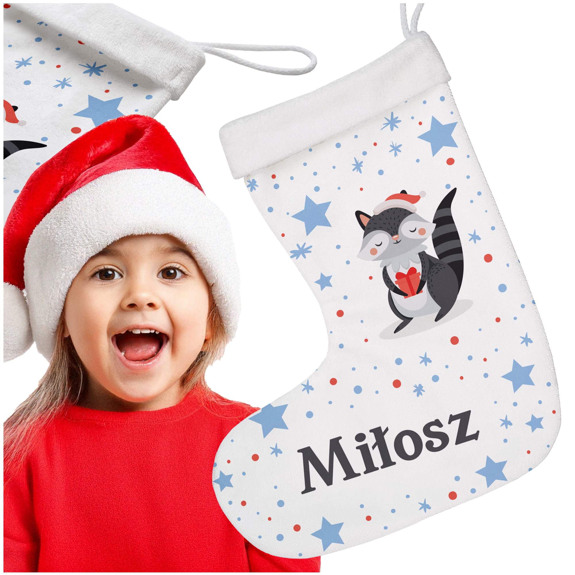 Prezent na Mikołajki Święta dla Dziecka - Świąteczna Skarpeta Minky z Imieniem - Biały Szop