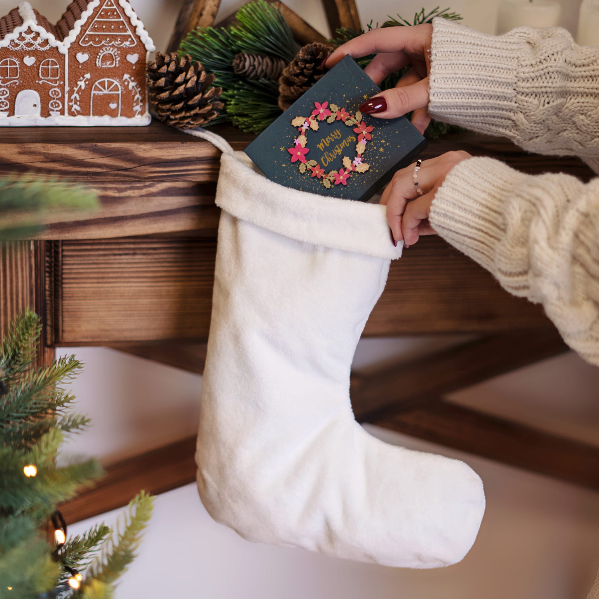 ⛄️ Świąteczne skarpety są oryginalnym, ekologicznym rozwiązaniem, które na pewno zachwyci obdarowaną osobę. Możesz w nich schować drobne upominki — od biżuterii po słodycze, a nawet karty podarunkowe — wszystko w elegancki sposób, który wprowadzi do Twojego świątecznego spotkania wyjątkowy element niespodzianki.