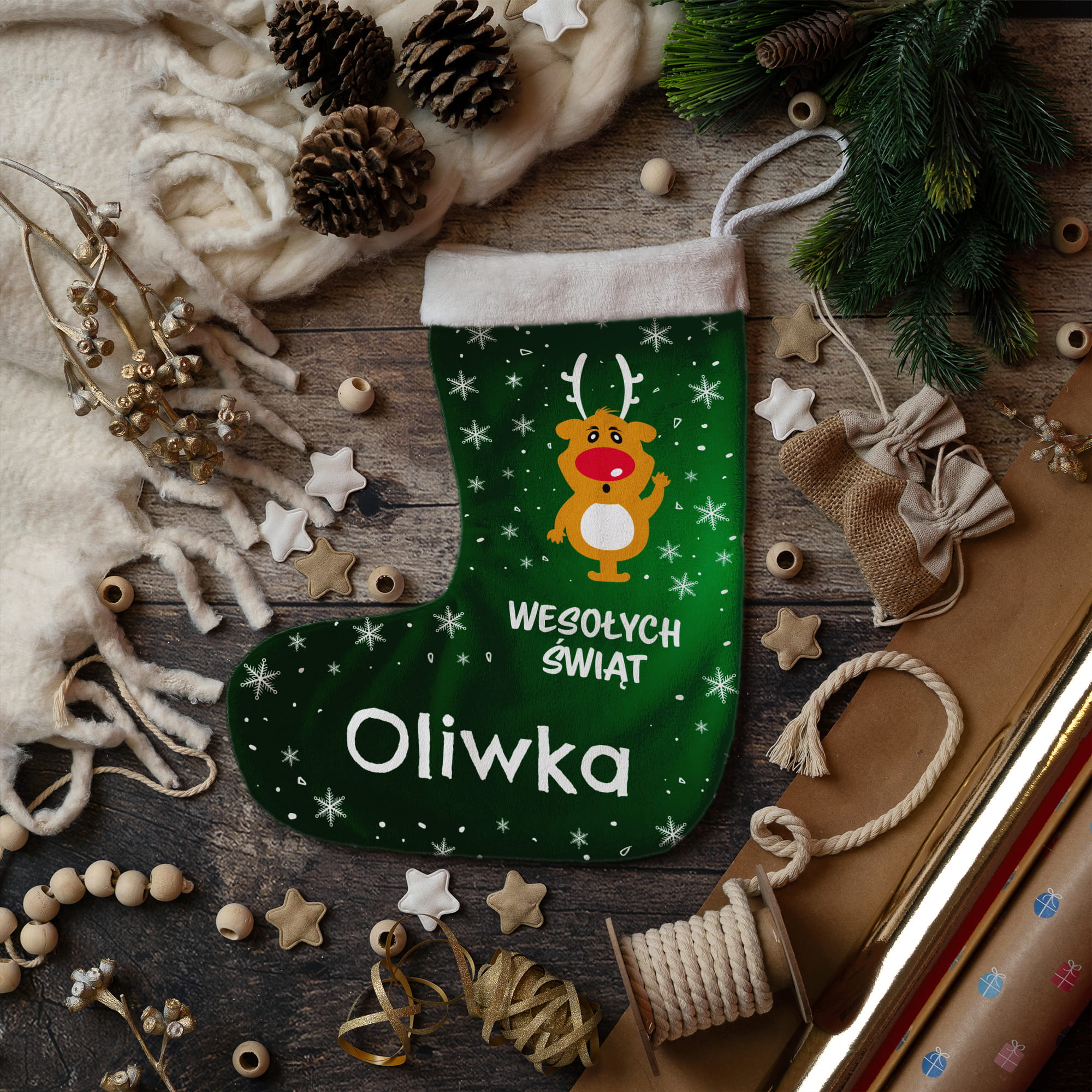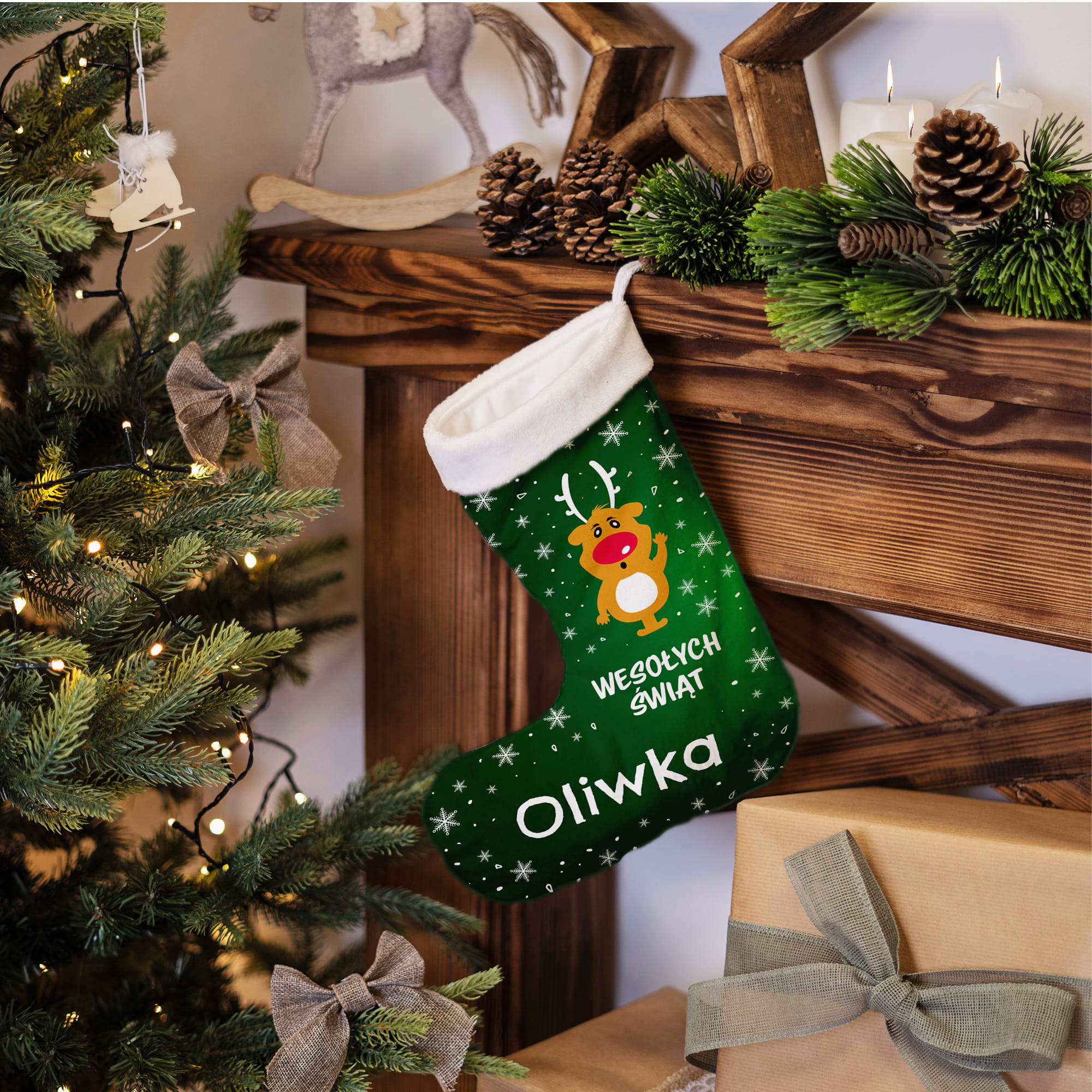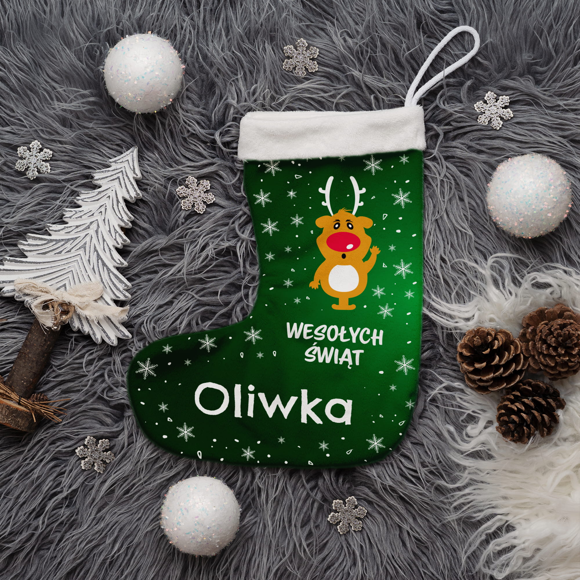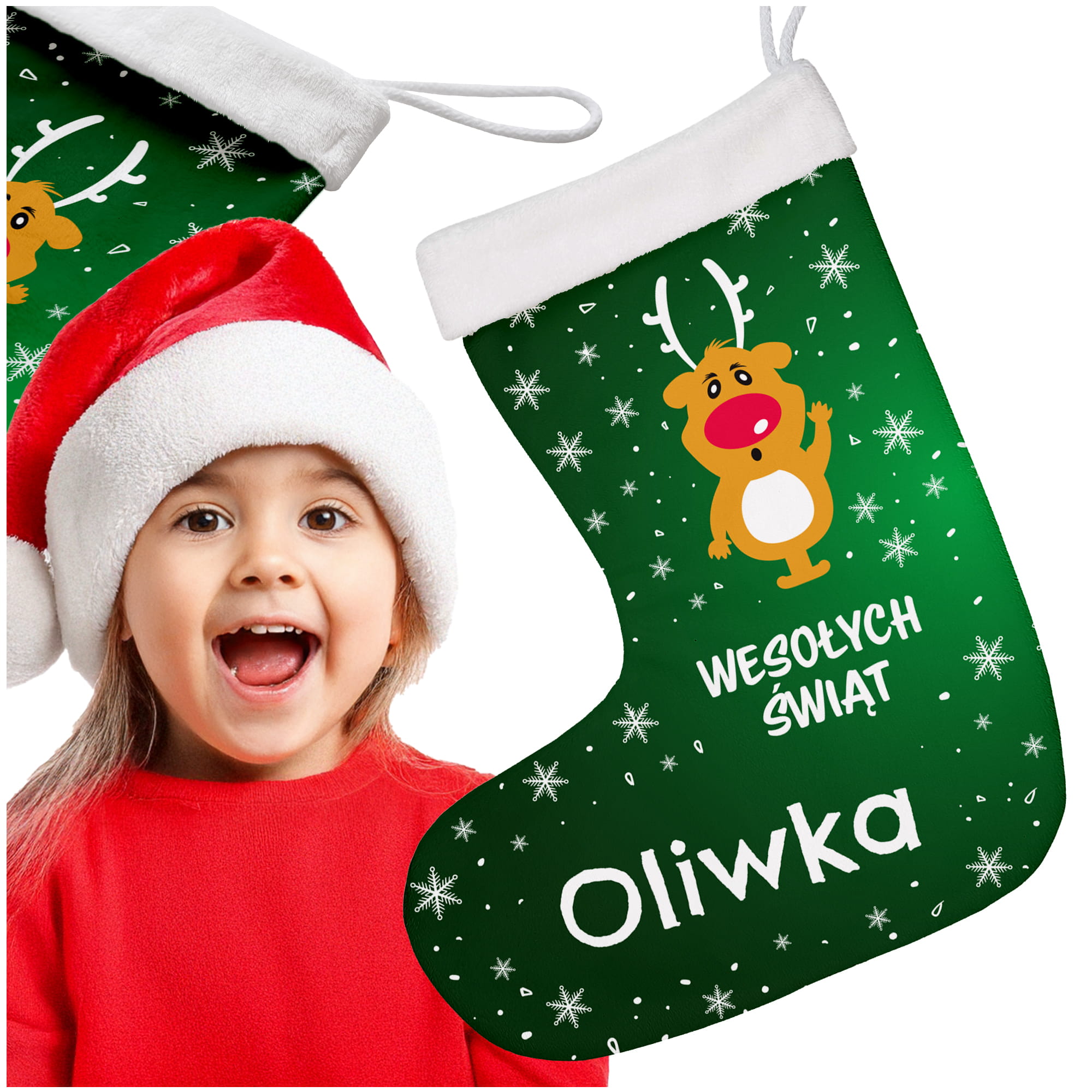 Prezent na Mikołajki Święta dla Dziecka - Świąteczna Skarpeta Minky z Imieniem - Wesołych Świąt