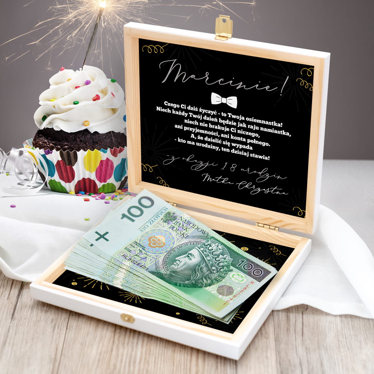 Pudełko Na Pieniądze na 18 Urodziny 18-stkę - Szkatułka na Pieniądze na Osiemnastkę - Ostatnie 500+