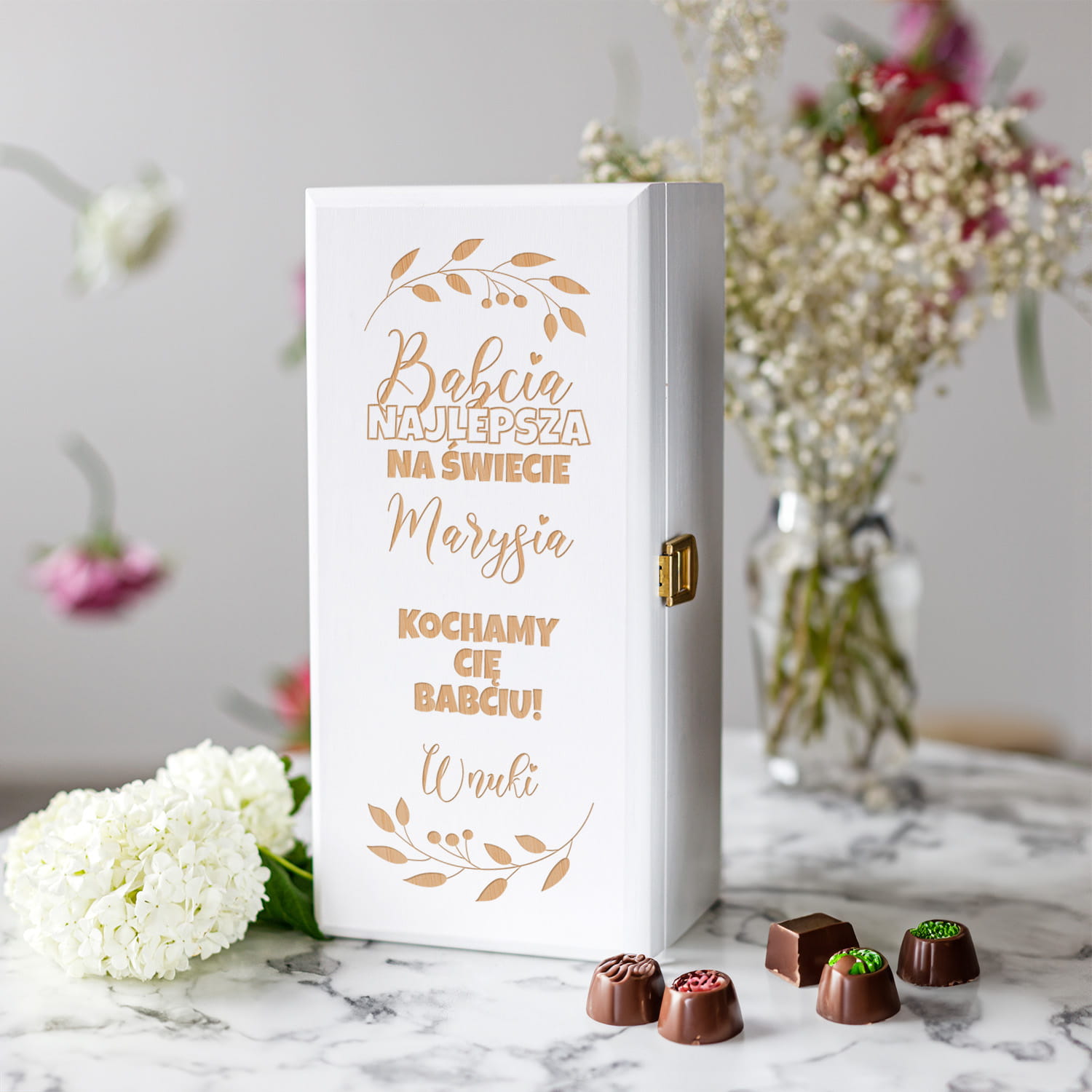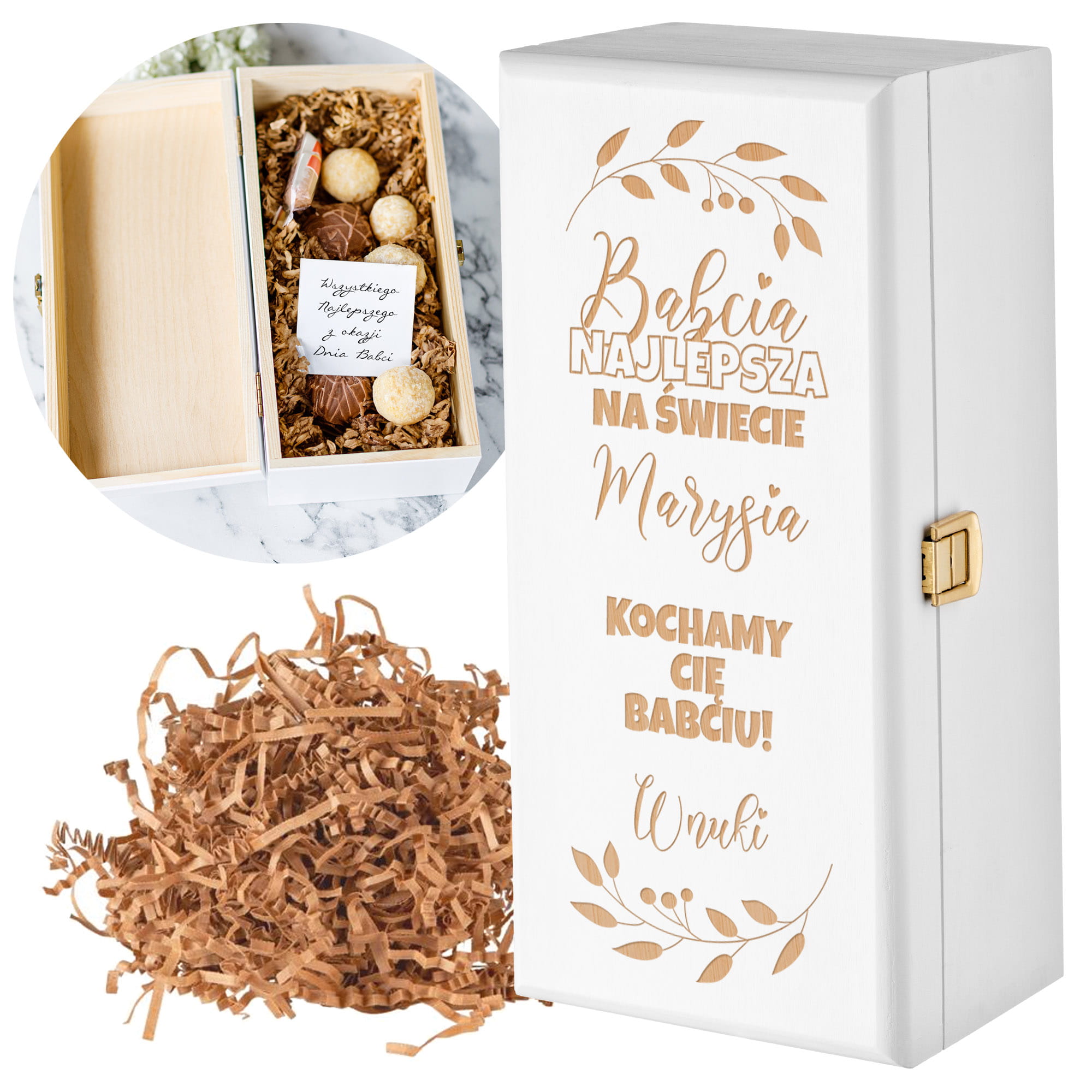 Pudełko na Prezent dla Babci z Grawerem - Skrzynka na Słodycze - Prezent na Dzień Babci - Babcia Najlepsza na Świecie