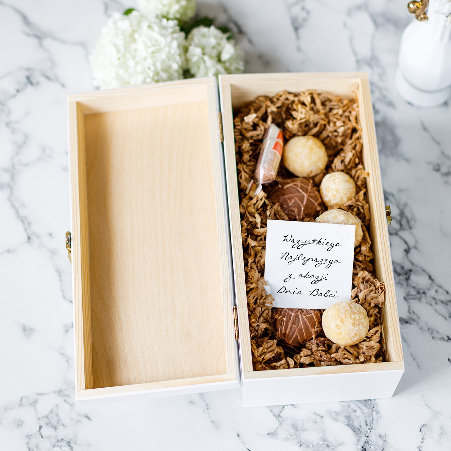 - Skrzynka, pudełko na słodycze będzie idealnym prezentem, który zachwyci każdą babcię niezależnie od wieku.