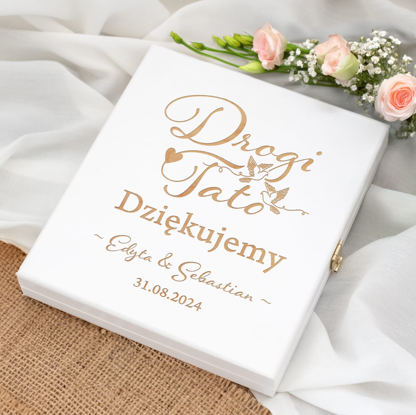 ⭐️ Podziękowanie dla Taty w pudełku z grawerowaną personalizacją sprawdzi się idealnie, jako wyjątkowa forma podziękowania w dniu ślubu.