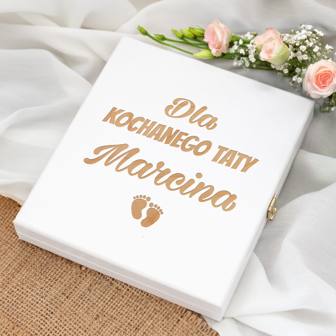 ⭐ Pudełko na zdjęcie z grawerem, pozwoli Ci wręczyć zdjęcie dziecka jako upominek dla młodego taty w taki sposób, że nie tylko ono samo będzie prezentem, ale także jego opakowanie.
