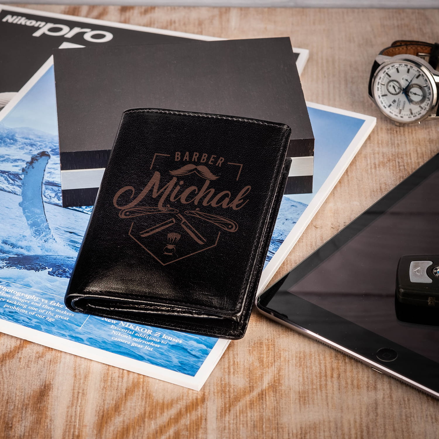 Skórzany Portfel Męski z Grawerem - Prezent dla Barbera - Barber