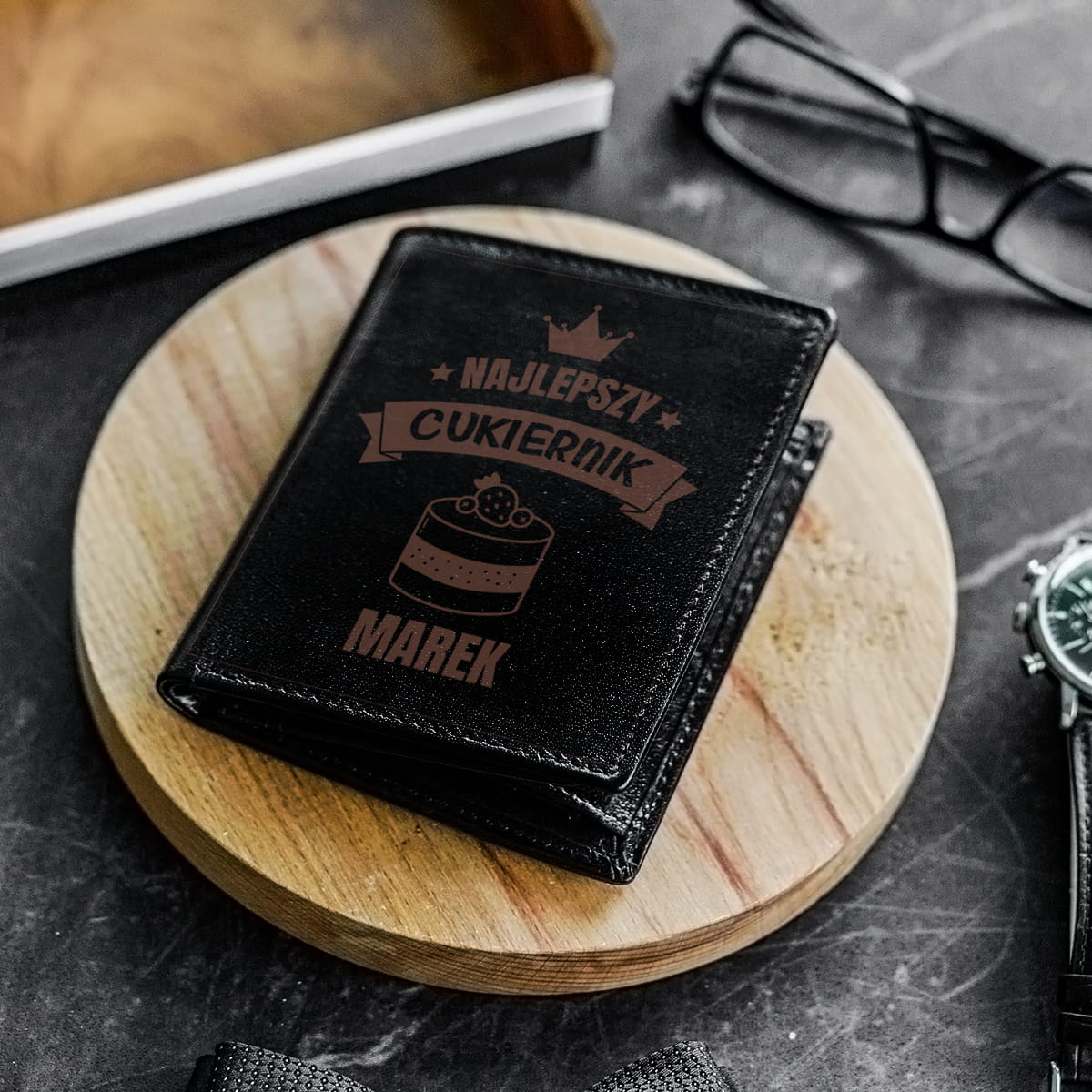 Skórzany Portfel Męski z Grawerem - Prezent dla Cukiernika - Najlepszy Cukiernik