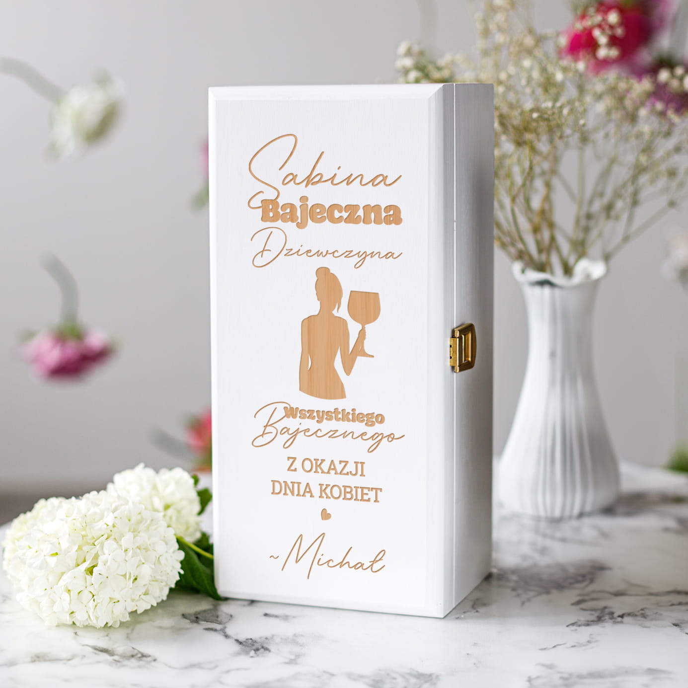 ORYGINALNA BIAŁA SKRZYNKA NA ALKOHOL Z GRAWEREM - PREZENT NA DZIEŃ KOBIET