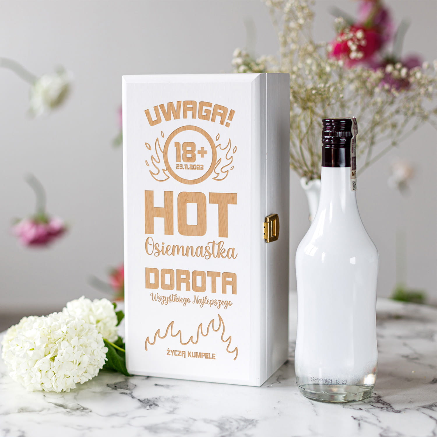 ORYGINALNA BIAŁA SKRZYNKA NA ALKOHOL Z GRAWEREM - PREZENT NA URODZINY