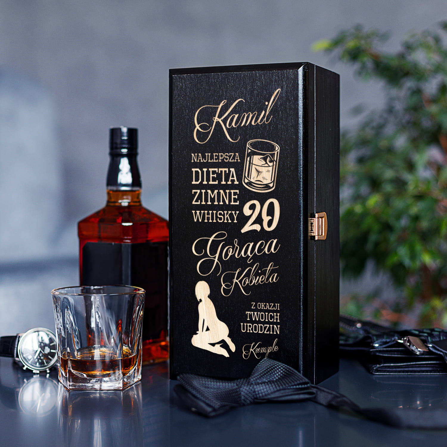 ORYGINALNA CZARNA SKRZYNKA NA ALKOHOL Z GRAWEREM - PREZENT NA URODZINY