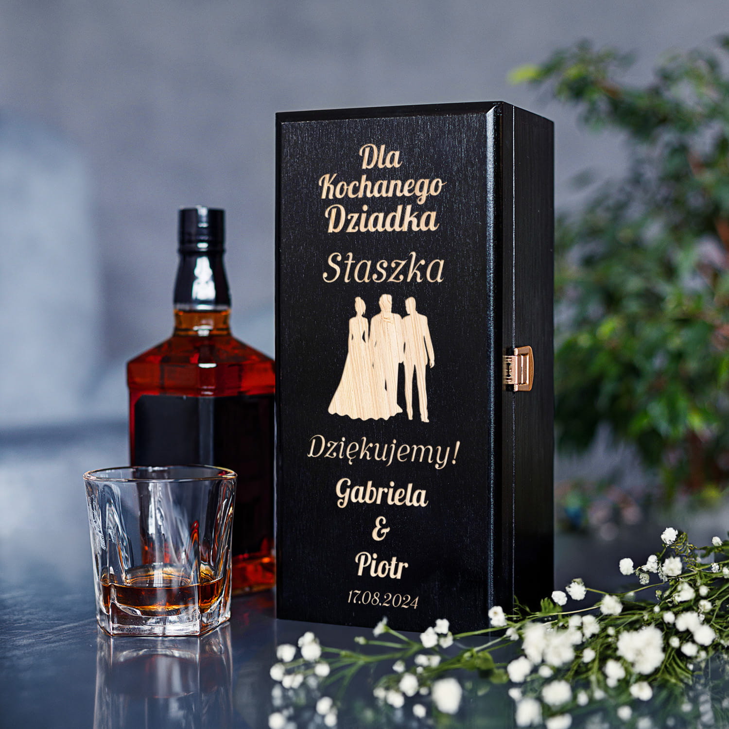 Skrzynka Na Alkohol z Grawerem Podziękowanie dla Dziadka - Podziękowanie dla Dziadków na Ślub - Dla Kochanego Dziadka - Czarna