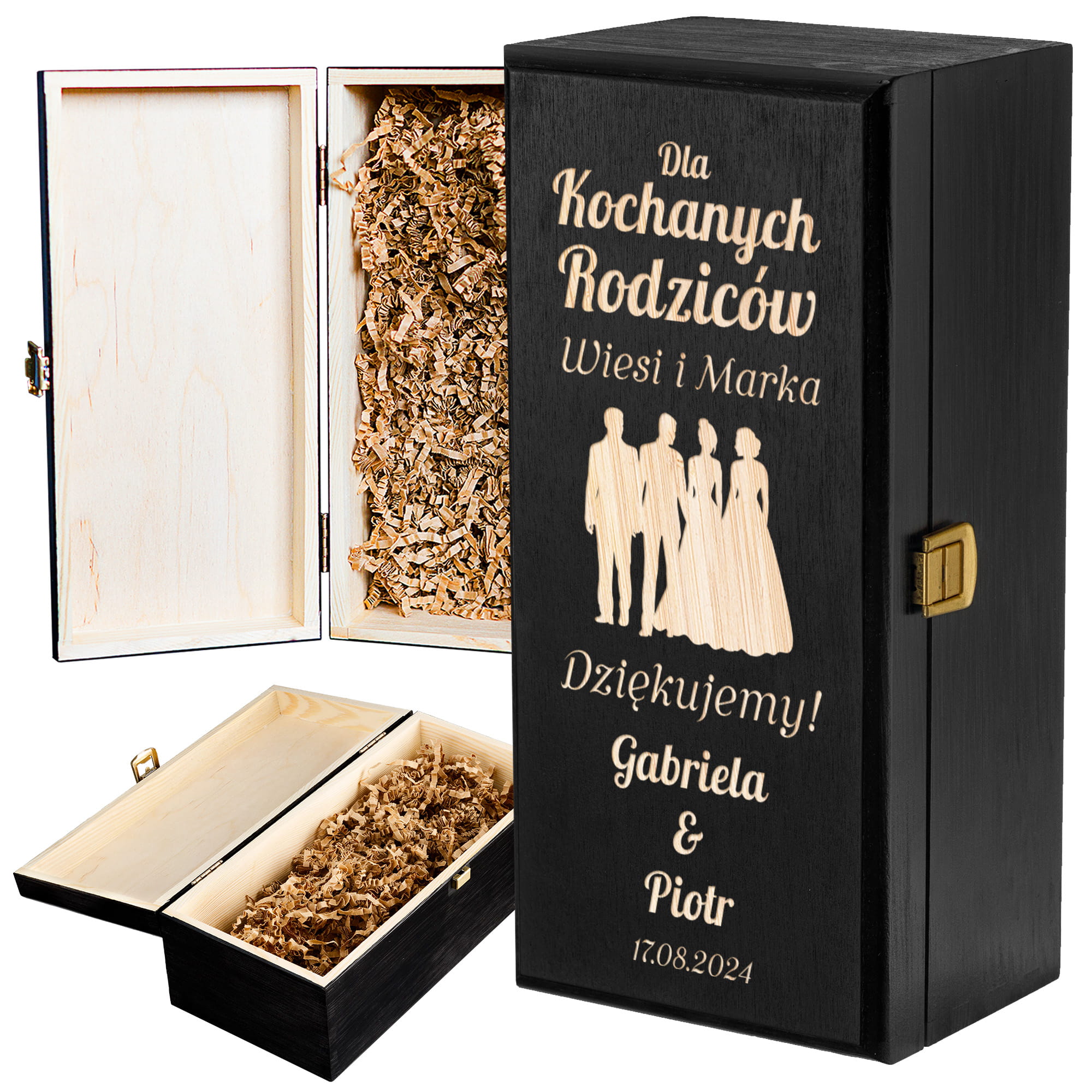 Skrzynka Na Alkohol z Grawerem Podziękowanie dla Rodziców - Prezent dla Rodziców na Ślub - Dla Kochanych Rodziców - Czarna