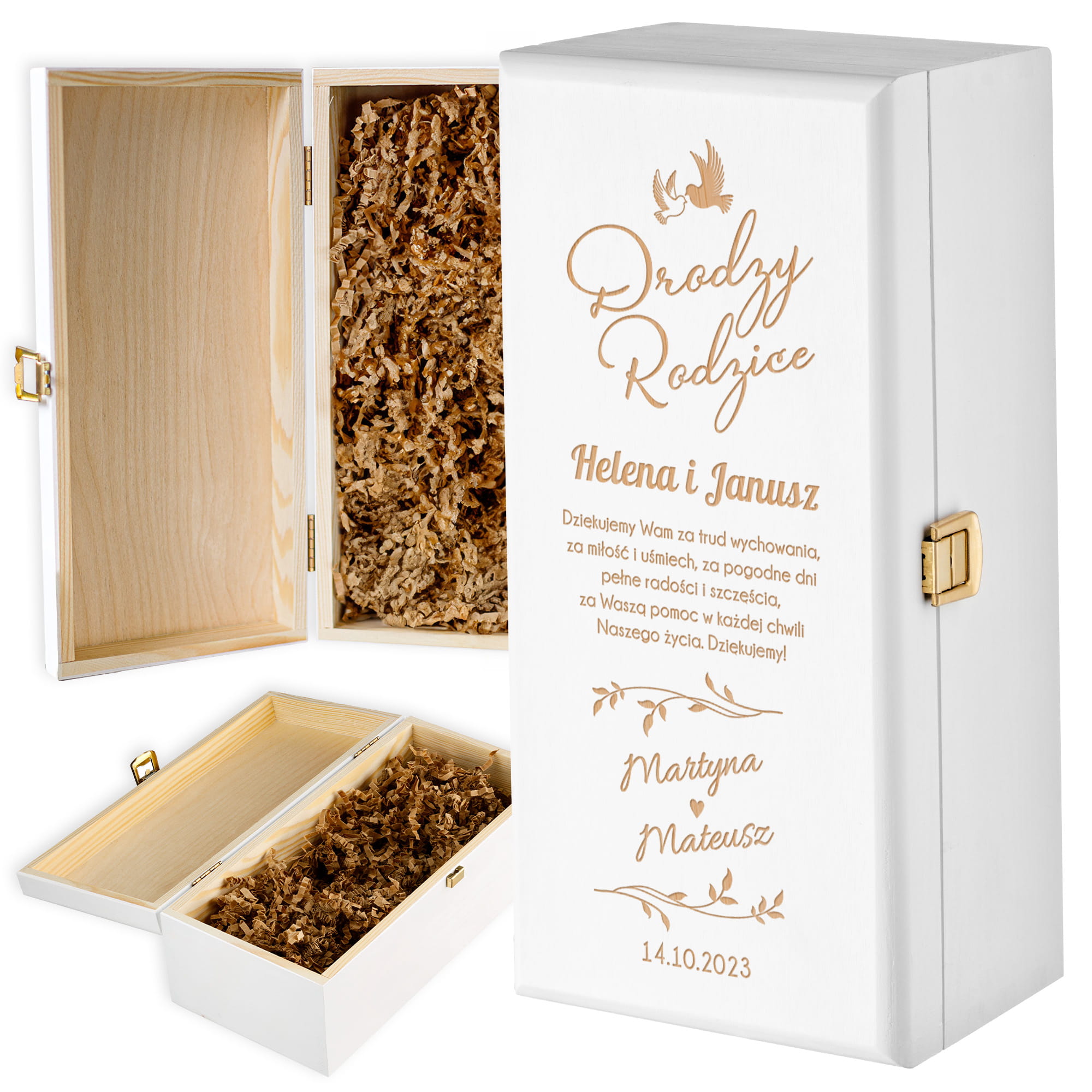 Skrzynka Na Alkohol z Grawerem Podziękowanie dla Rodziców - Prezent dla Rodziców na Ślub - Drodzy Rodzice - Biała