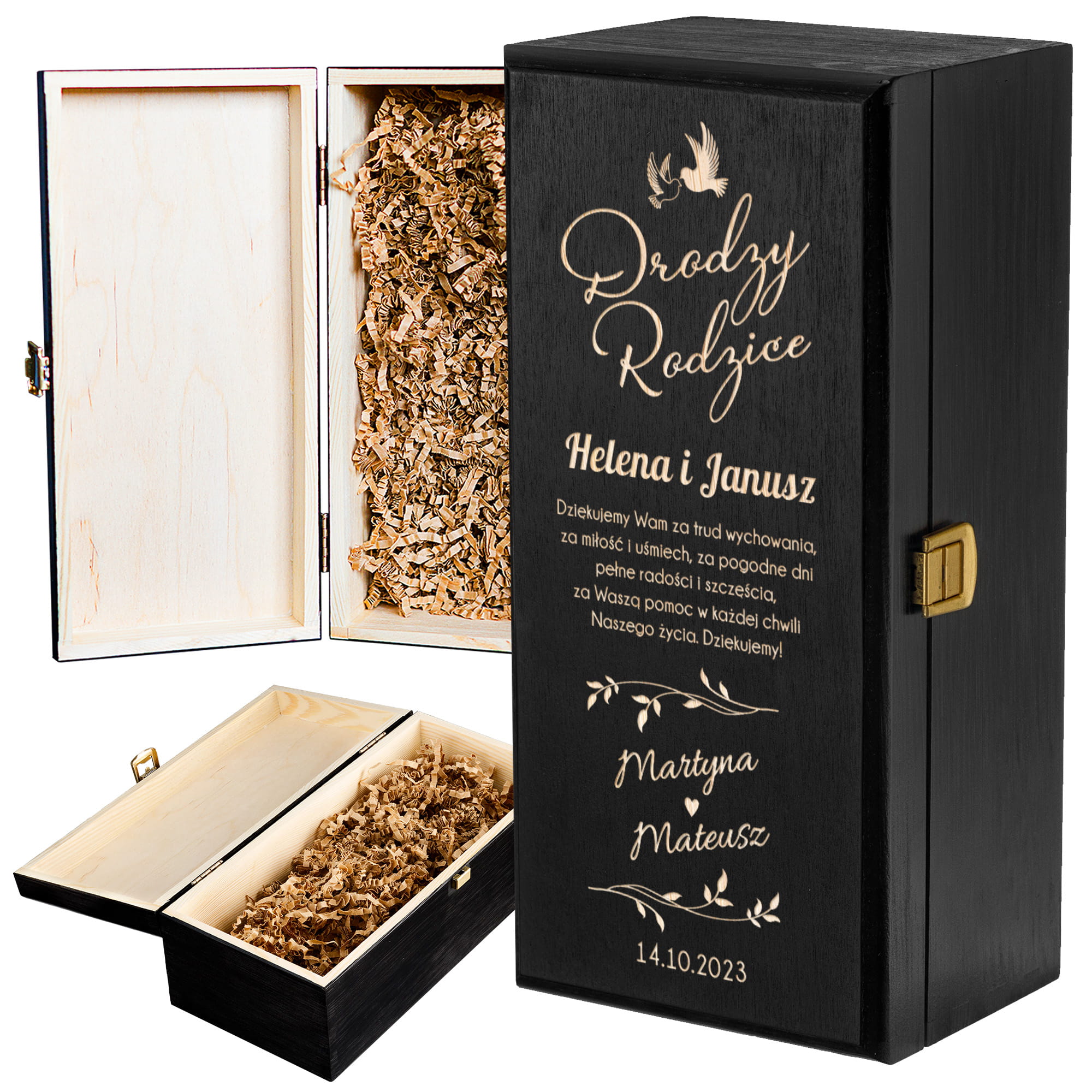 Skrzynka Na Alkohol z Grawerem Podziękowanie dla Rodziców - Prezent dla Rodziców na Ślub - Drodzy Rodzice - Czarna