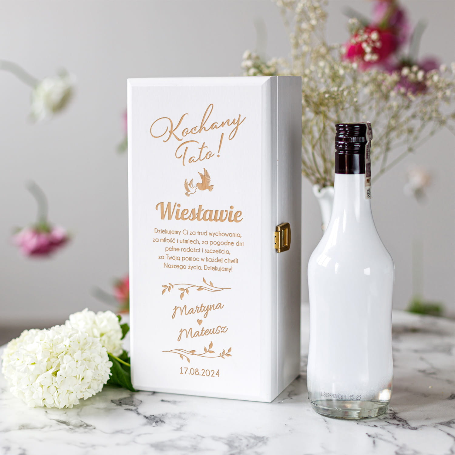 Skrzynka Na Alkohol z Grawerem Podziękowanie dla Taty - Podziękowanie dla Rodziców na Ślub - Kochany Tato - Biała