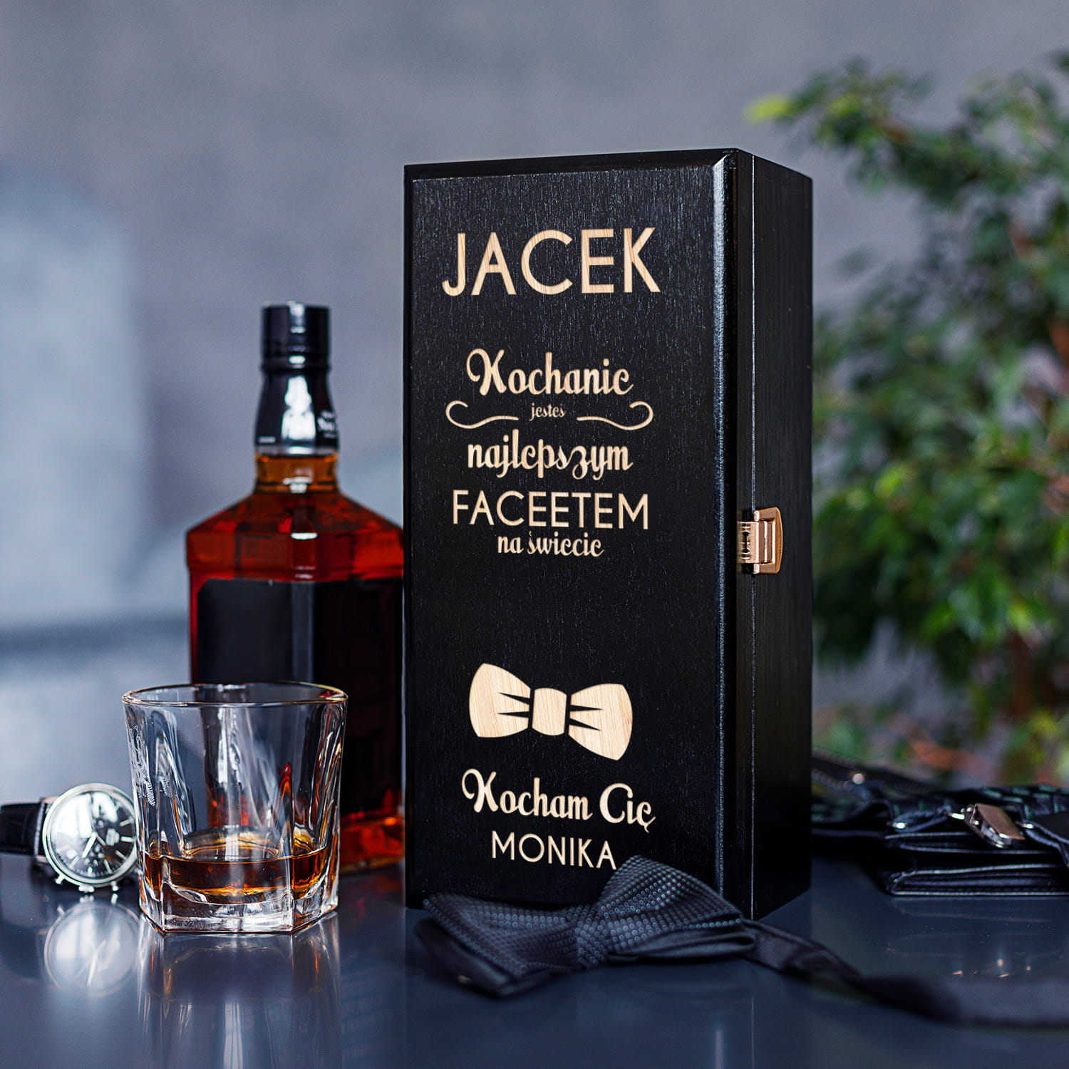 ELEGANCKA SKRZYNKA NA ALKOHOL Z GRAWEREM