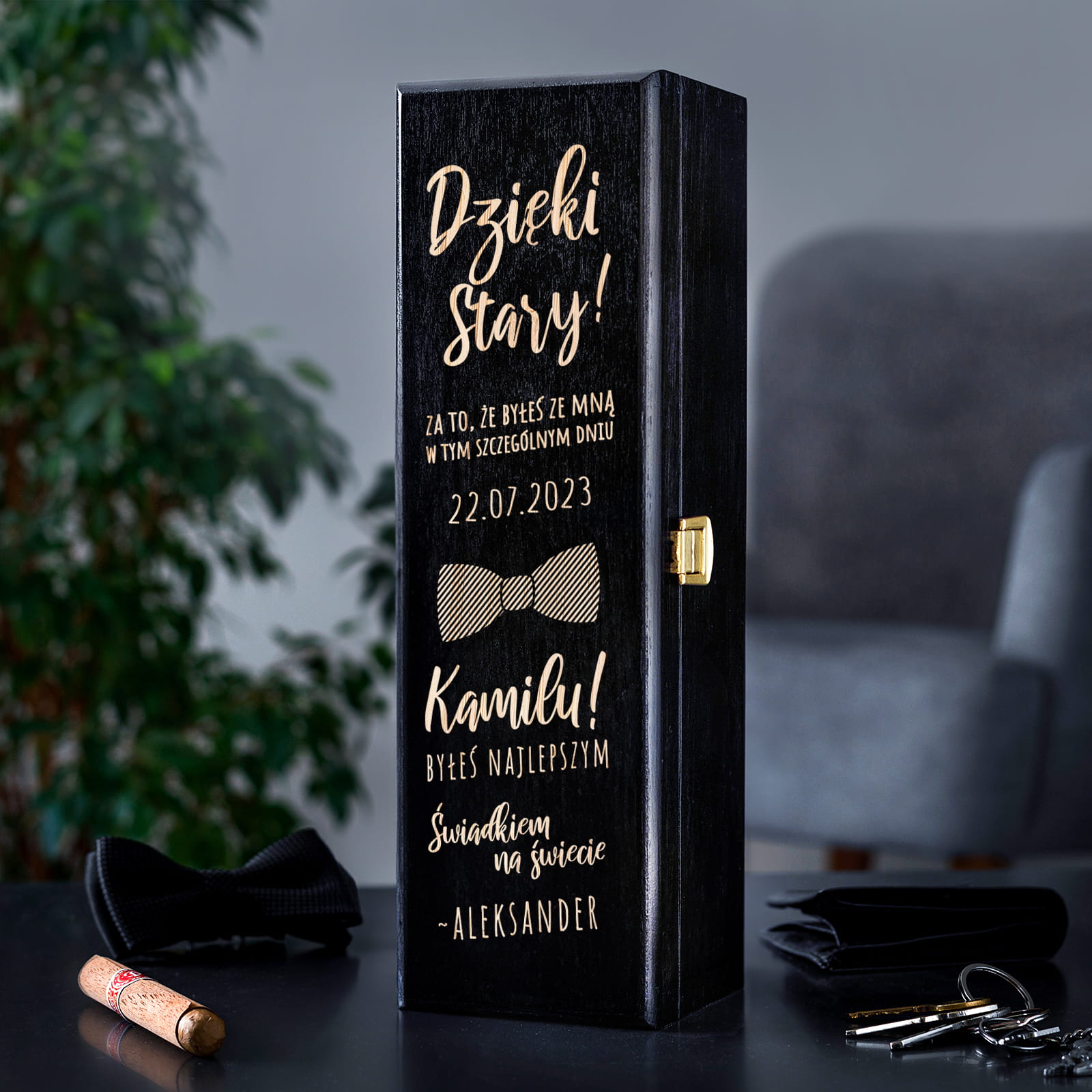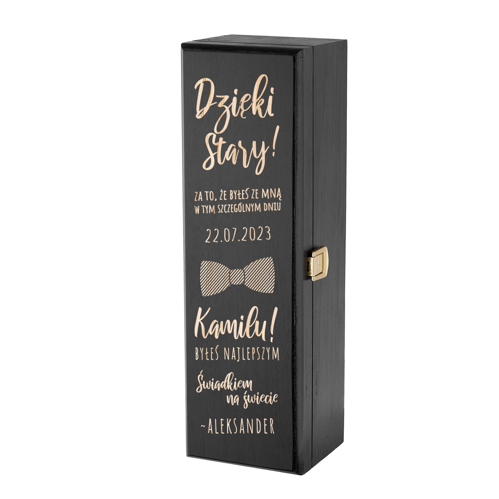 Skrzynka Na Wino dla Świadka - Podziękowanie dla Świadka - Dzięki Stary - Czarna