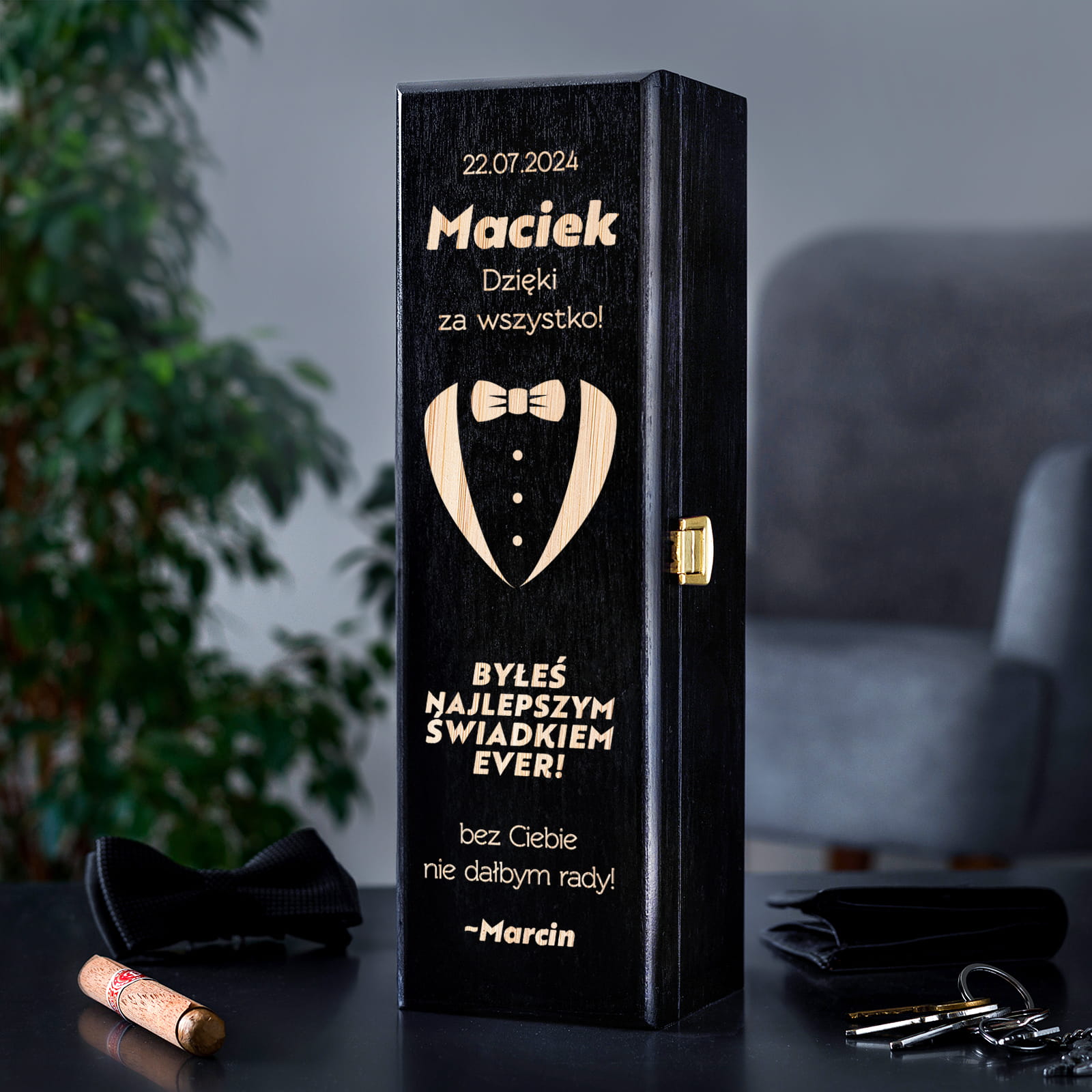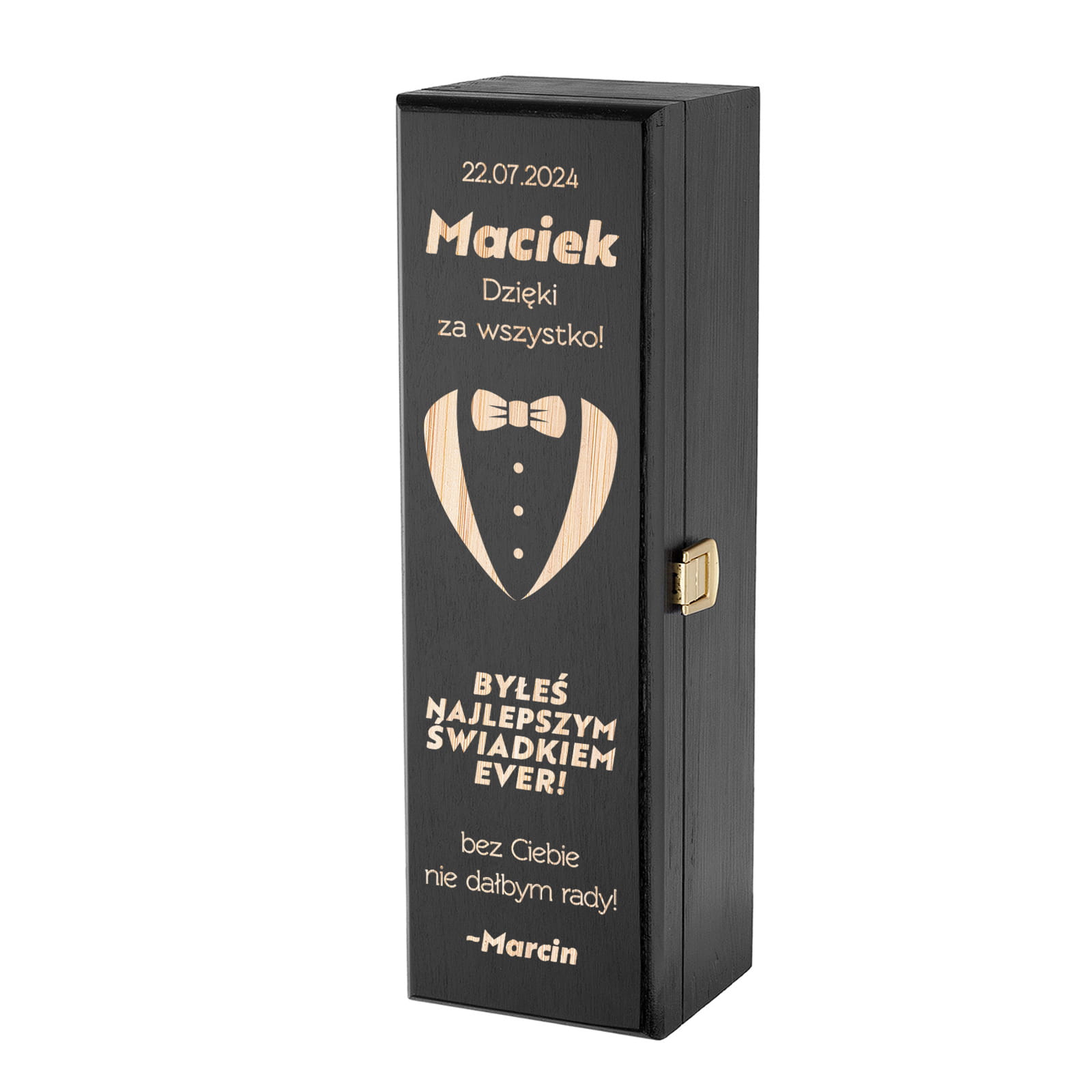 ⭐ ORYGINALNA SKRZYNKA NA WINO Z GRAWEREM - PODZIĘKOWANIE DLA ŚWIADKA ⭐