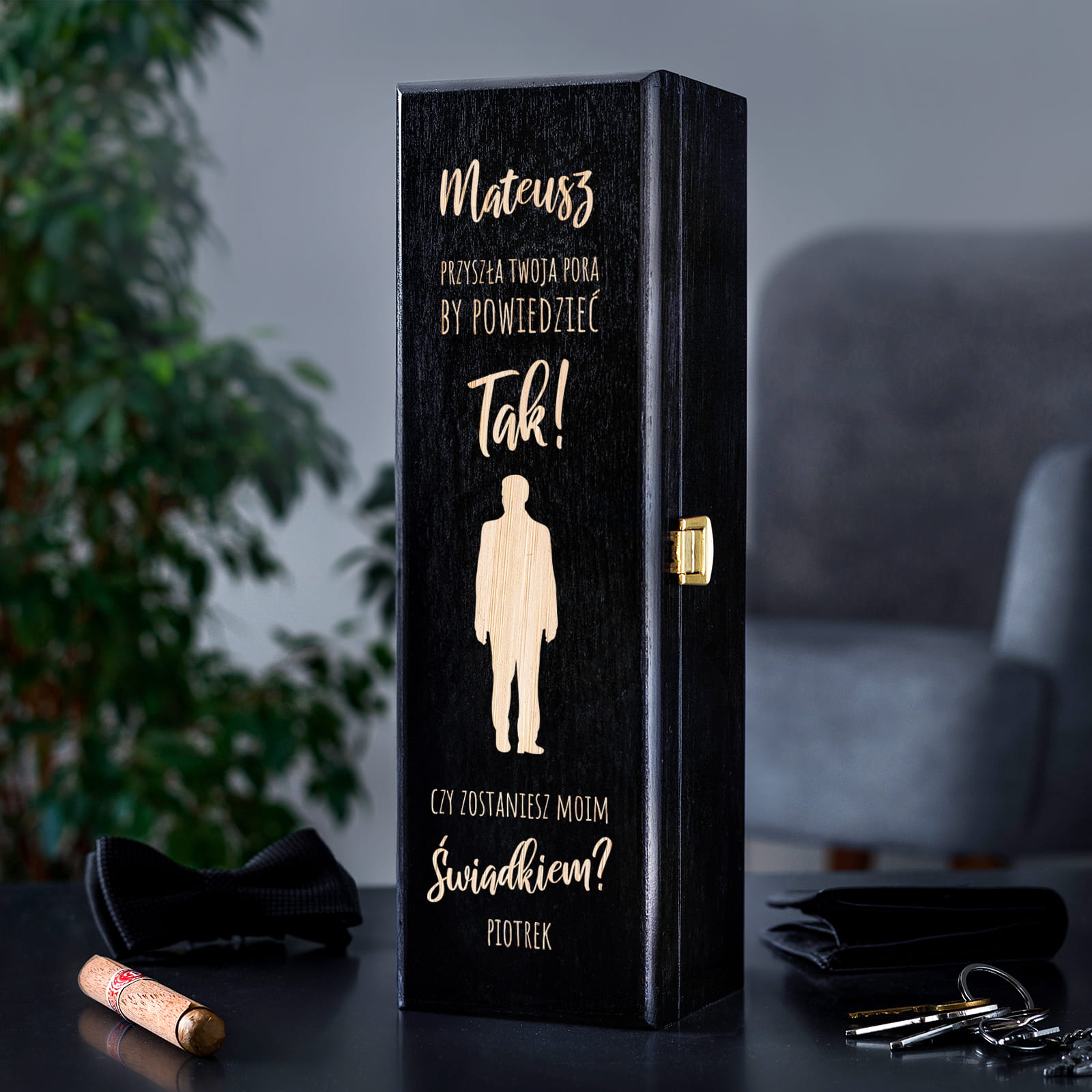 Skrzynka Na Wino dla Świadka - Prośba o Świadkowanie - Zaproszenie dla Świadka - Przyszła Twoja Pora - Czarna