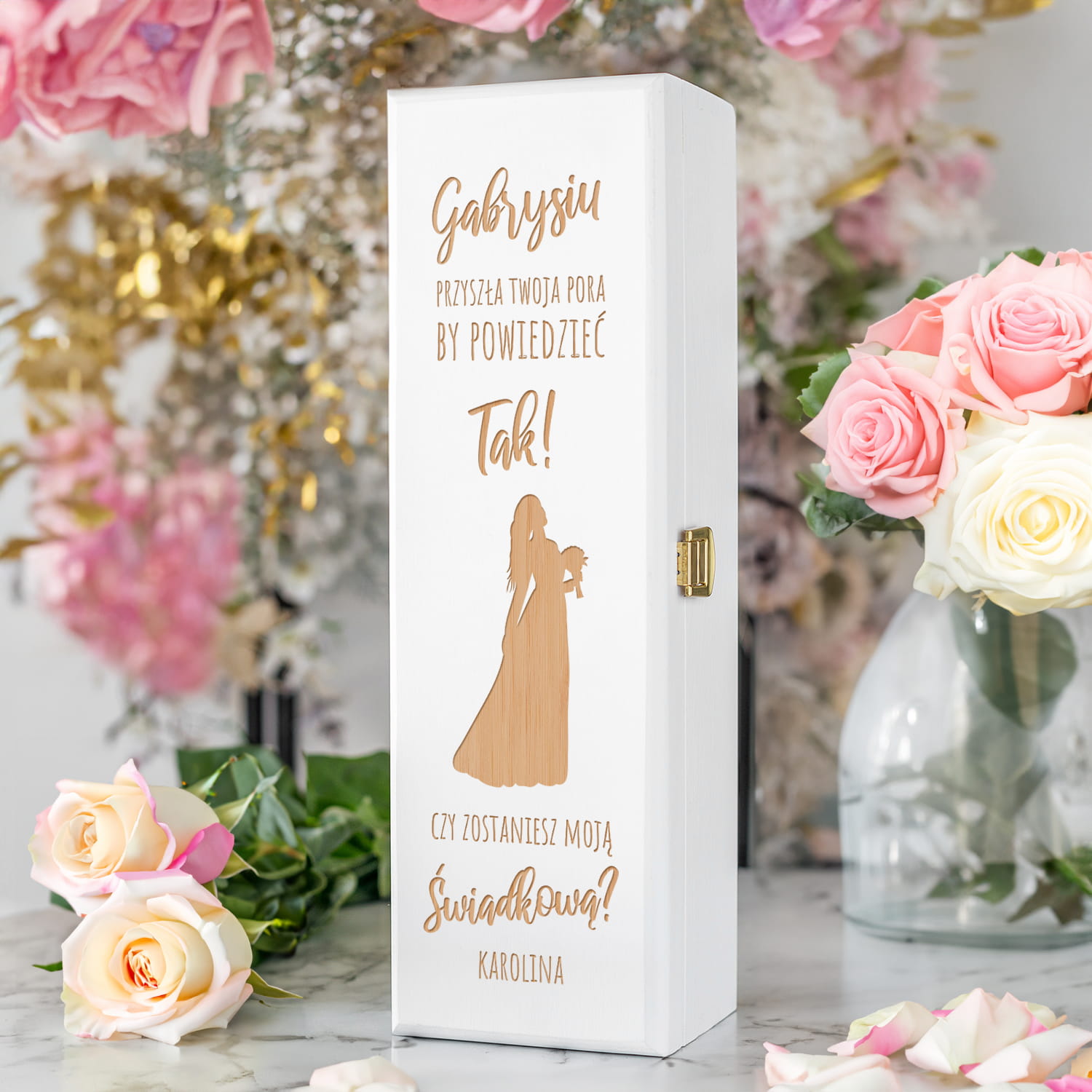 Skrzynka Na Wino dla Świadkowej - Prośba o Świadkowanie - Zaproszenie dla Świadkowej - Przyszła Twoja Pora - Biała