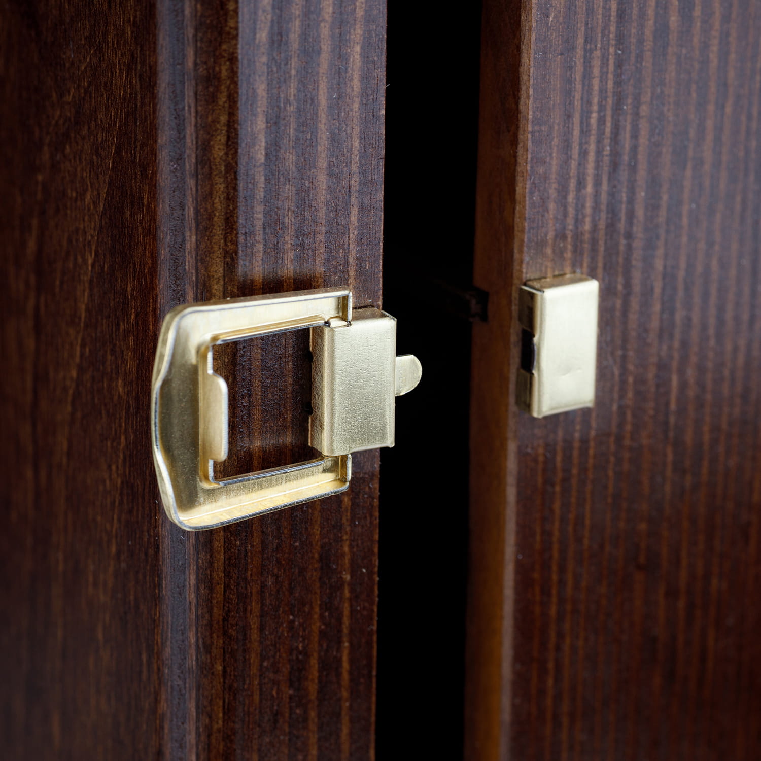 ✅ Posiada solidne metalowe zamknięcie na boku skrzynki.