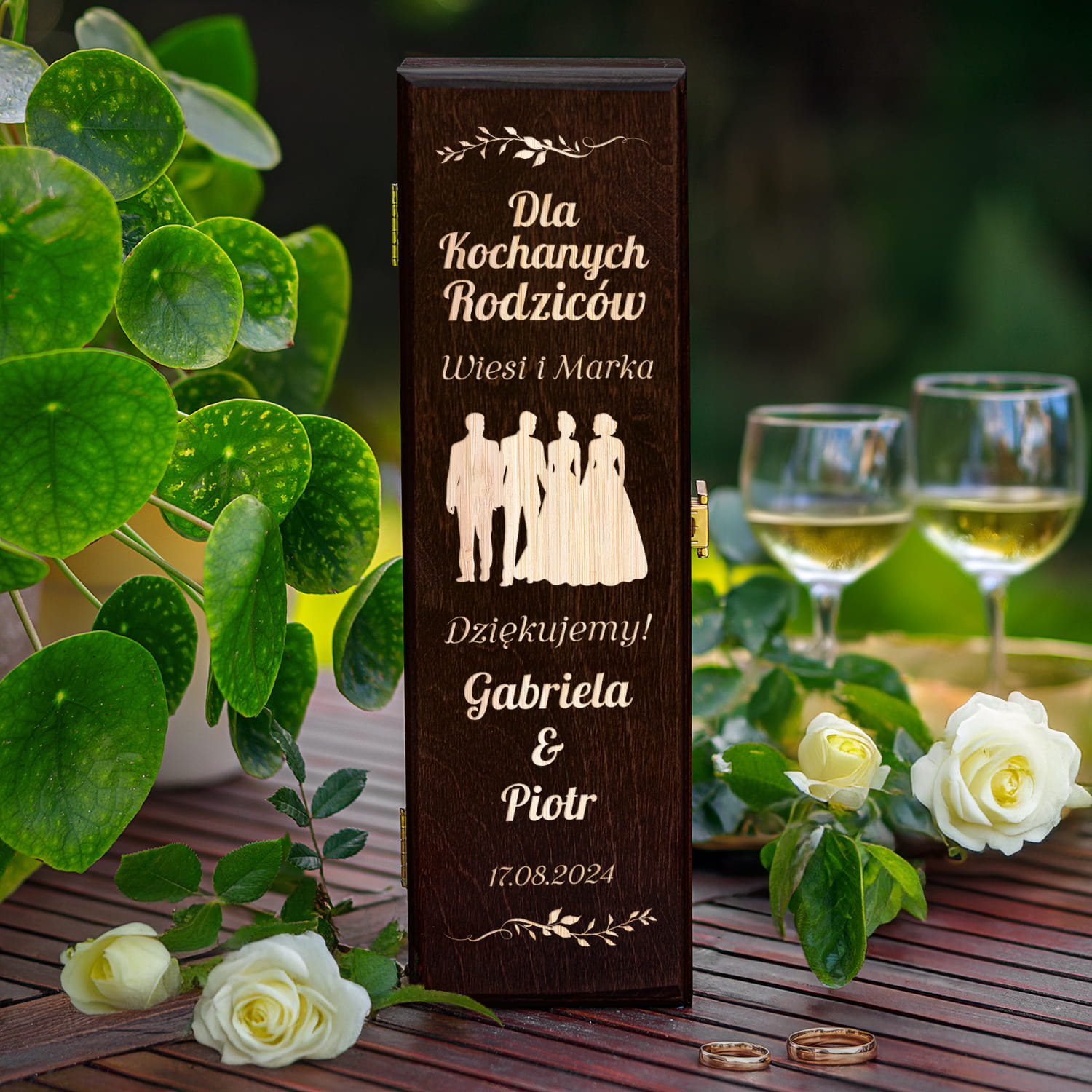Skrzynka Na Wino z Grawerem Podziękowanie dla Rodziców - Prezent dla Rodziców na Ślub - Dla Kochanych Rodziców - Brąz
