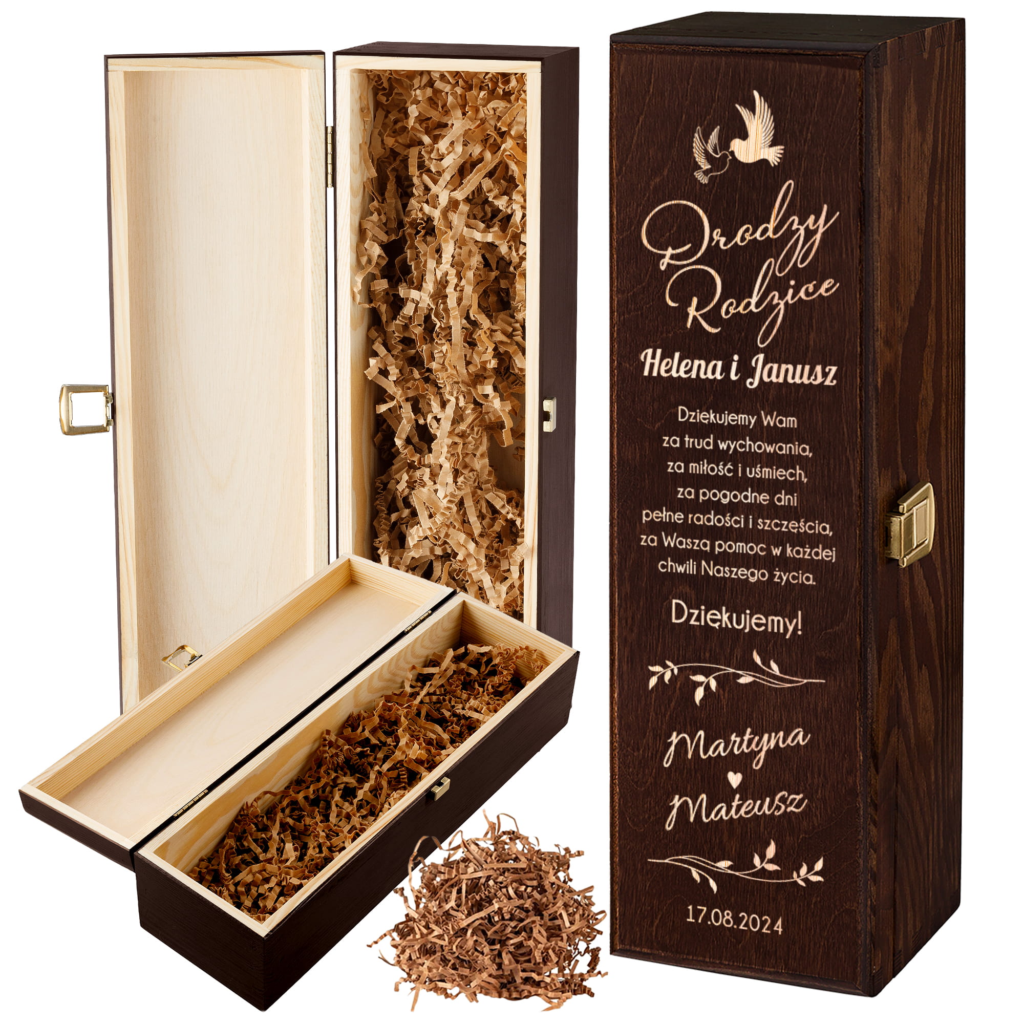 PODZIĘKOWANIE DLA RODZICÓW, PODZIĘKOWANIE DLA MAMY, PODZIĘKOWANIE DLA TATY PREZENT NA ŚLUB SKRZYNKA Z GRAWEREM NA WINO, PUDEŁKO NA PREZENT