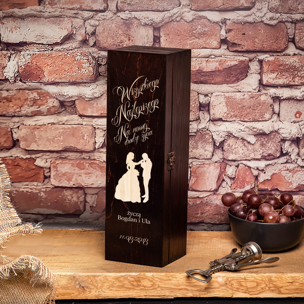 Skrzynka Na Wino z Grawerem - Prezent na Ślub dla Pary Młodej - Na Nowej Drodze Życia - Pojedyncza