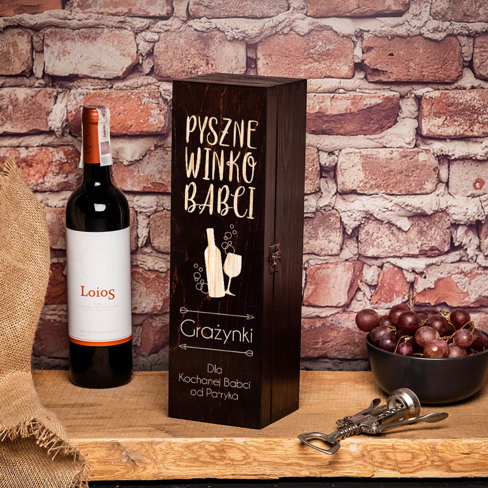 Grawerowana skrzynka na wino będzie nie tylko opakowaniem butelki, ale także eleganckim prezentem dla babci sama w sobie. Obdarowana babcia będzie mogła postawić skrzynkę w widocznym miejscu w domu albo mieszkaniu. Każdy będzie pod ogromnym wrażeniem, a prezent dla babci sprawi jej ogromną radość.