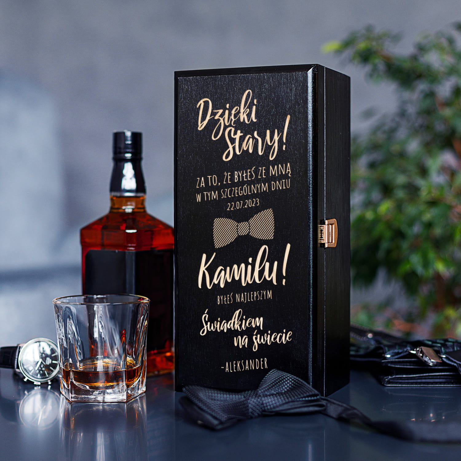 Skrzynka na Alkohol dla Świadka - Podziękowanie dla Świadka - Prezent dla Świadka na Ślub - Dzięki Stary - Czarna