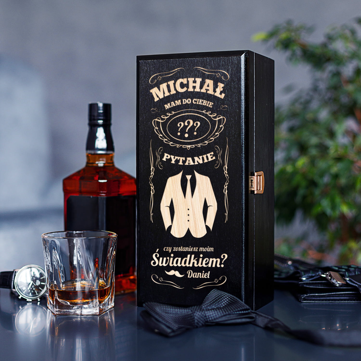 Chcesz poprosić wyjątkowego mężczyznę o zostanie Twoim świadkiem? Wręcz mu butelkę znanego trunku w skrzynce z personalizowanym grawerem.