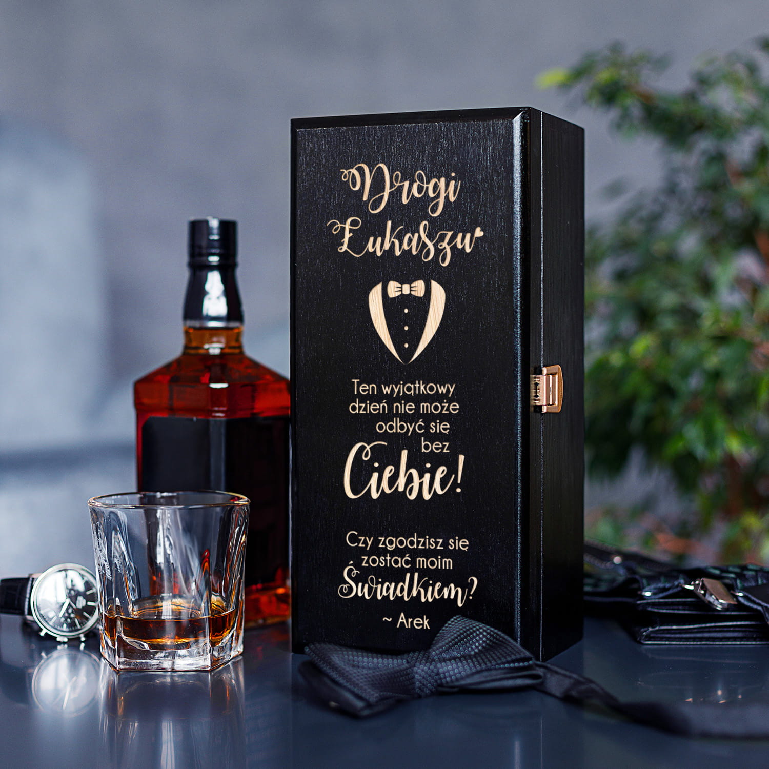 Chcesz poprosić wyjątkowego mężczyznę o zostanie Twoim świadkiem? Wręcz mu butelkę znanego trunku w skrzynce z personalizowanym grawerem.
