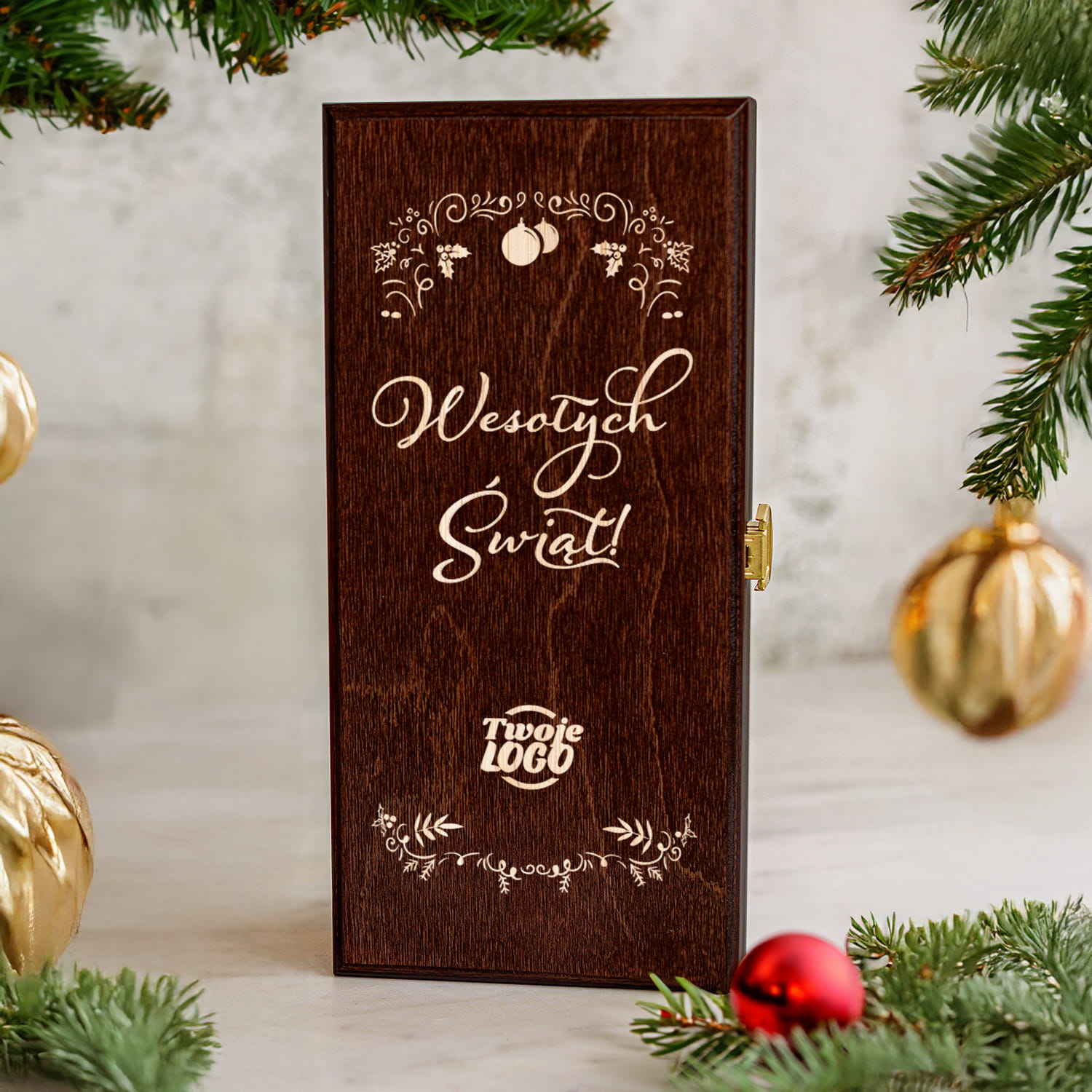 Skrzynka na Alkohol z Logo - Prezent na Święta dla Firm - Prezent Świąteczny z Logo - Wesołych Świąt - Brązowa