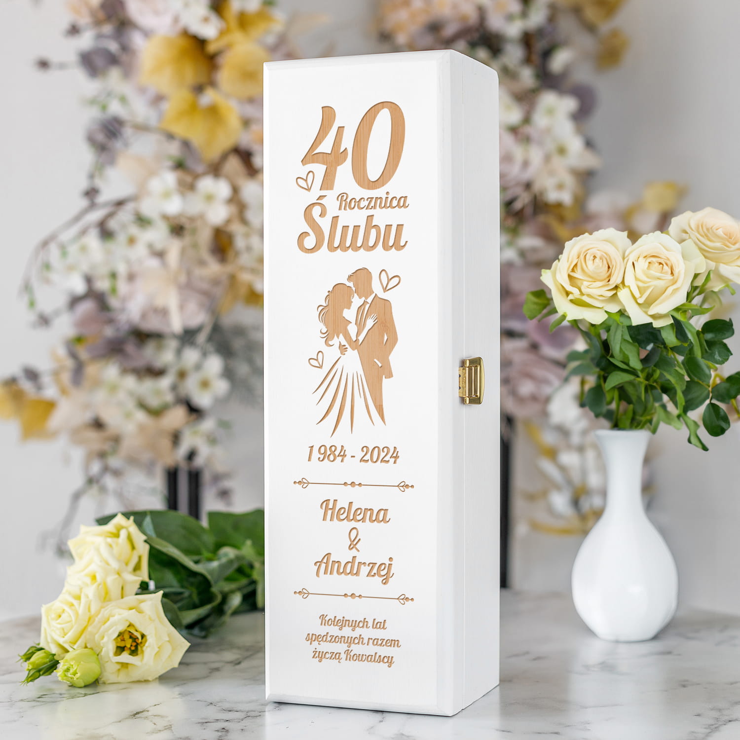 Skrzynka na Wino na Rocznicę Ślubu - Prezent z Okazji Rocznicy Ślubu - Kolejnych Lat - Biała