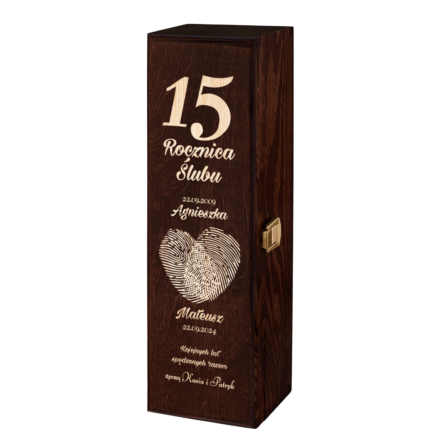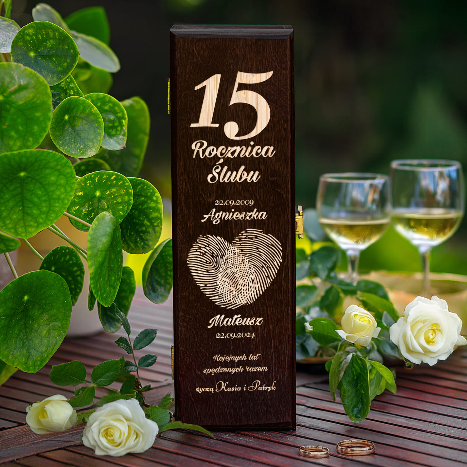 Skrzynka na Wino na Rocznicę Ślubu - Prezent z Okazji Rocznicy Ślubu - Rocznica Ślubu Odciski - Brąz