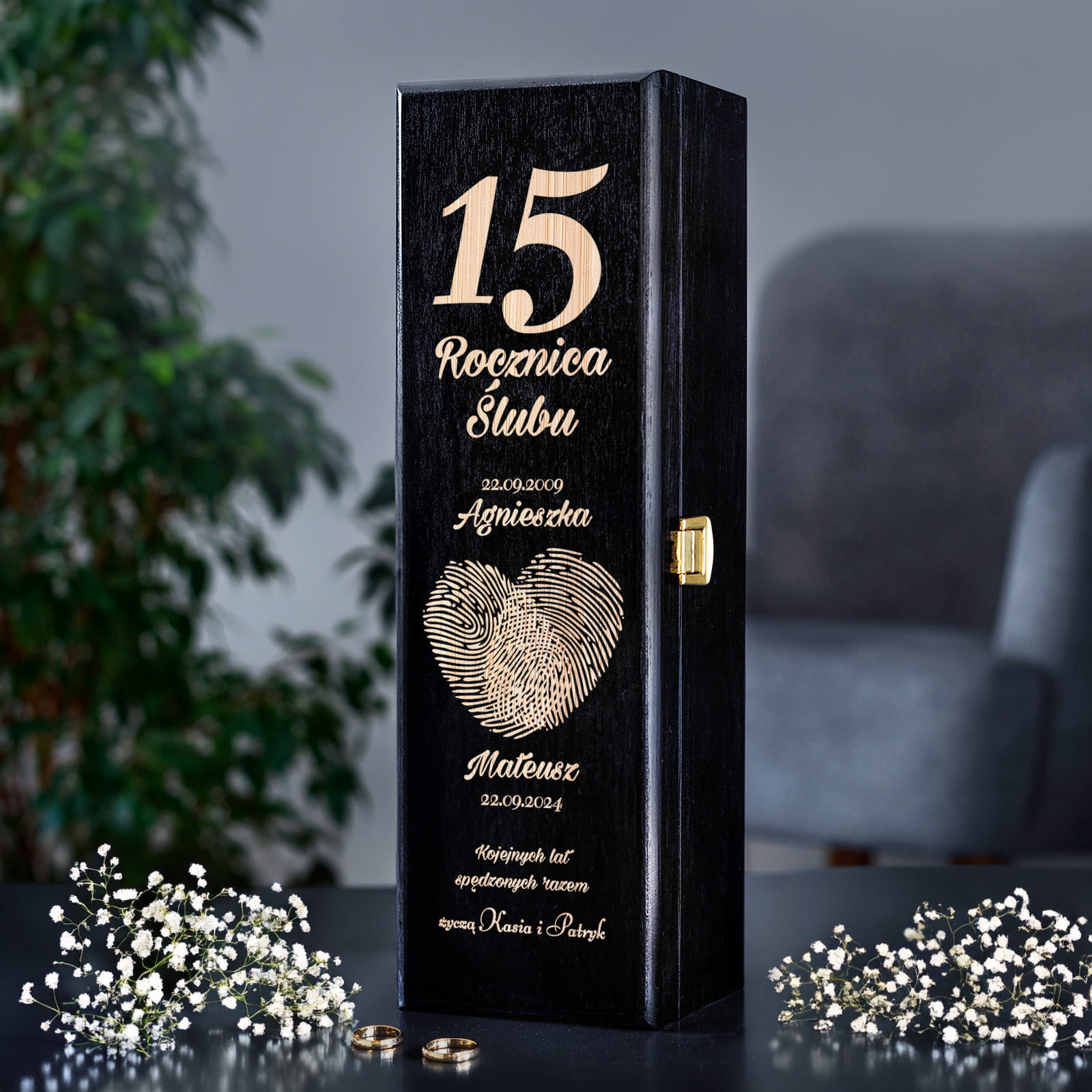 Skrzynka na Wino na Rocznicę Ślubu - Prezent z Okazji Rocznicy Ślubu - Rocznica Ślubu Odciski - Czarna