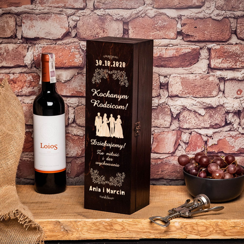 Skrzynka na Wino z Grawerem - Podziękowanie dla Rodziców - Kochanym Rodzicom - Pojedyncza
