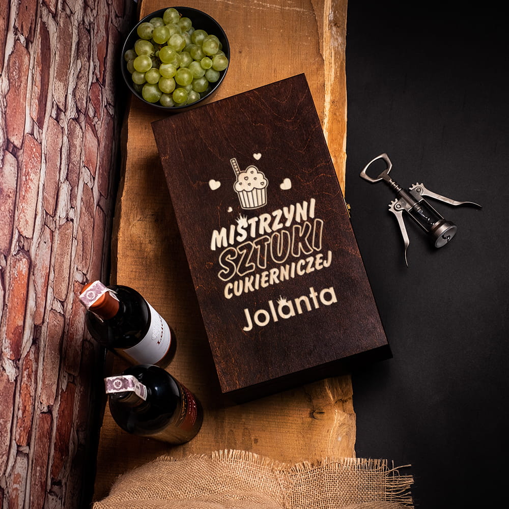 Skrzynka na Wino z Grawerem - Prezent dla Cukiernika - Mistrzyni Sztuki Cukierniczej - Podwójna