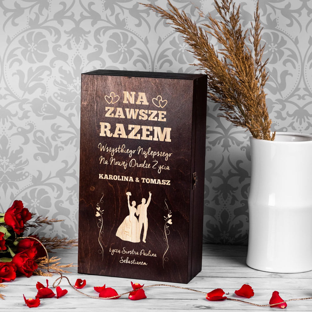 Skrzynka na Wino z Grawerem - Prezent na Ślub dla Pary Młodej - Na Zawsze Razem - Podwójna