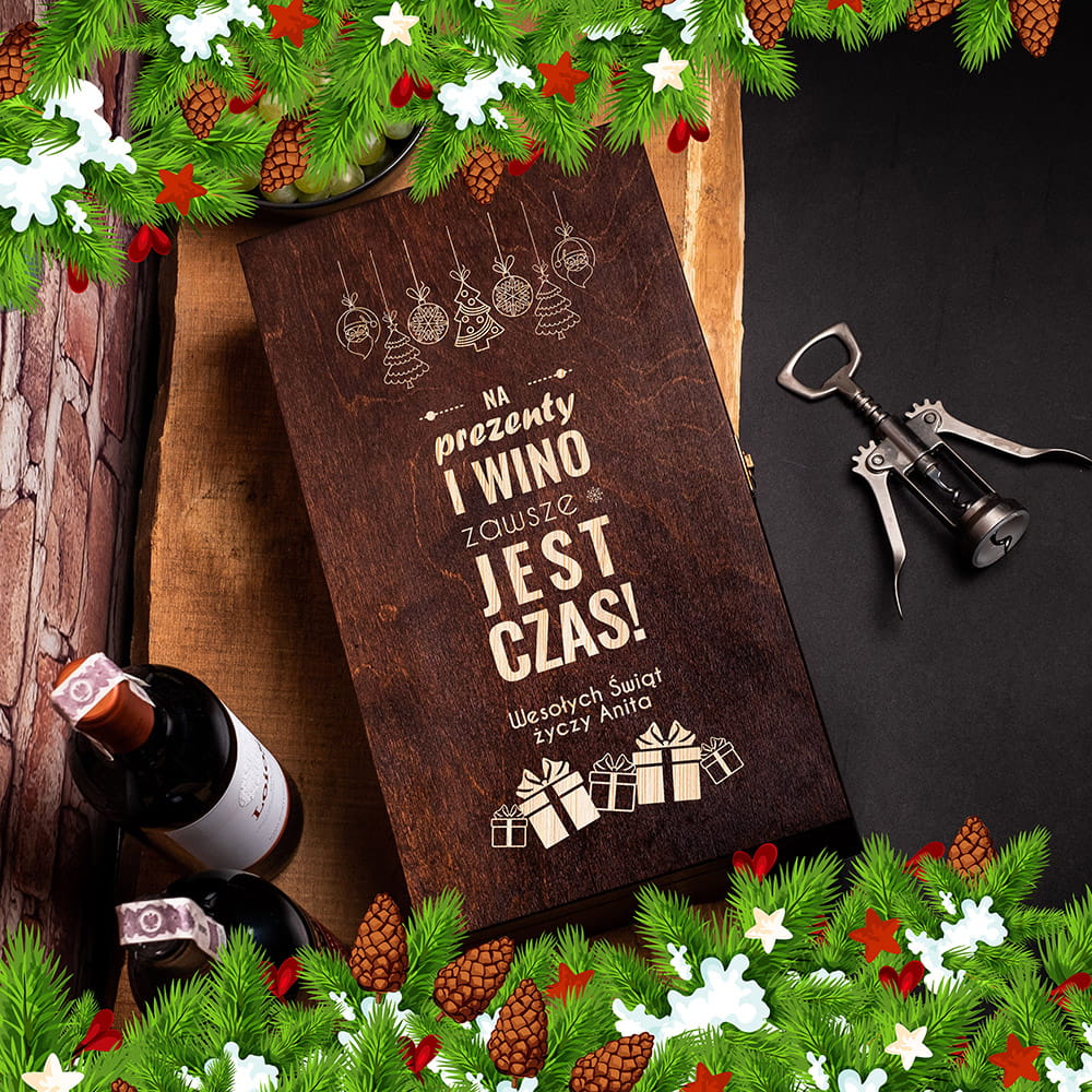 Skrzynka na Wino z Grawerem - Prezent na Święta