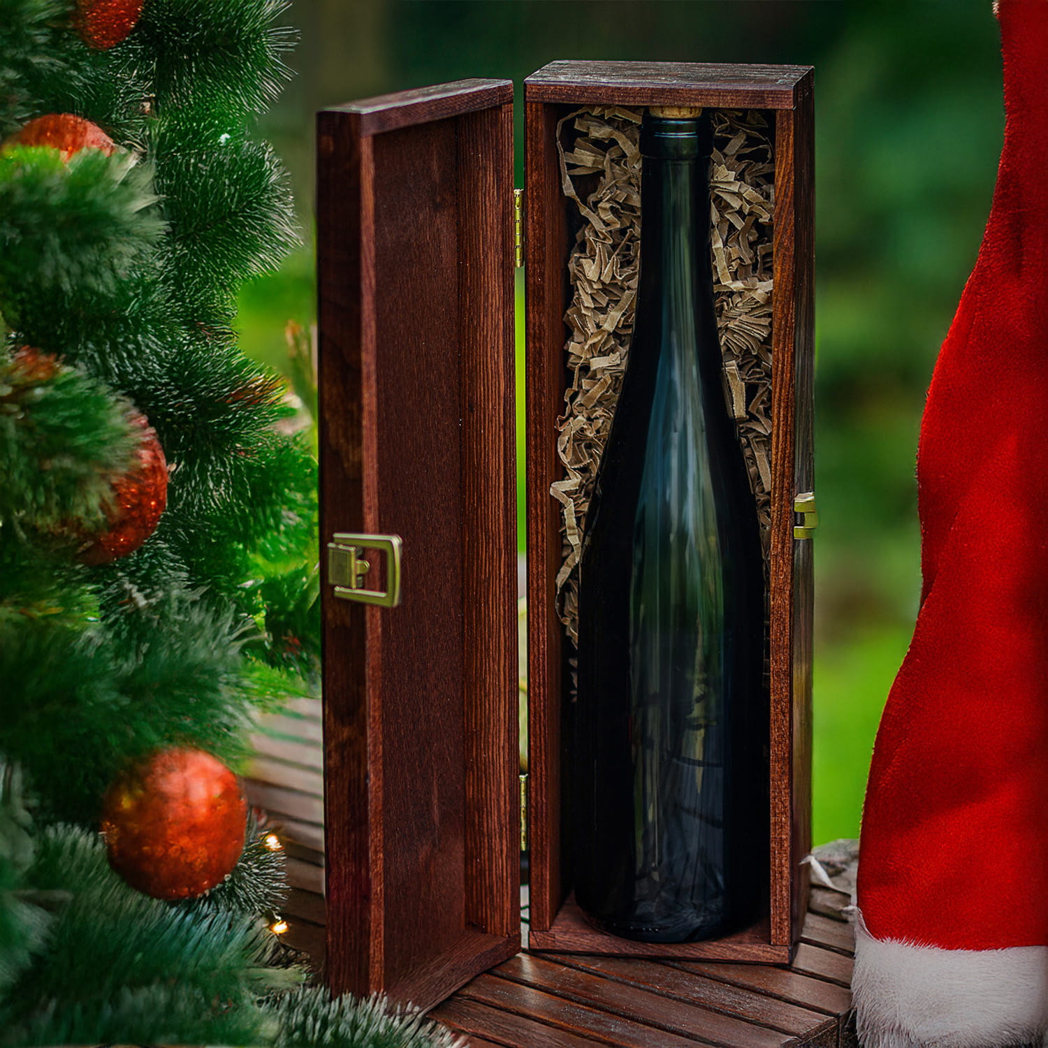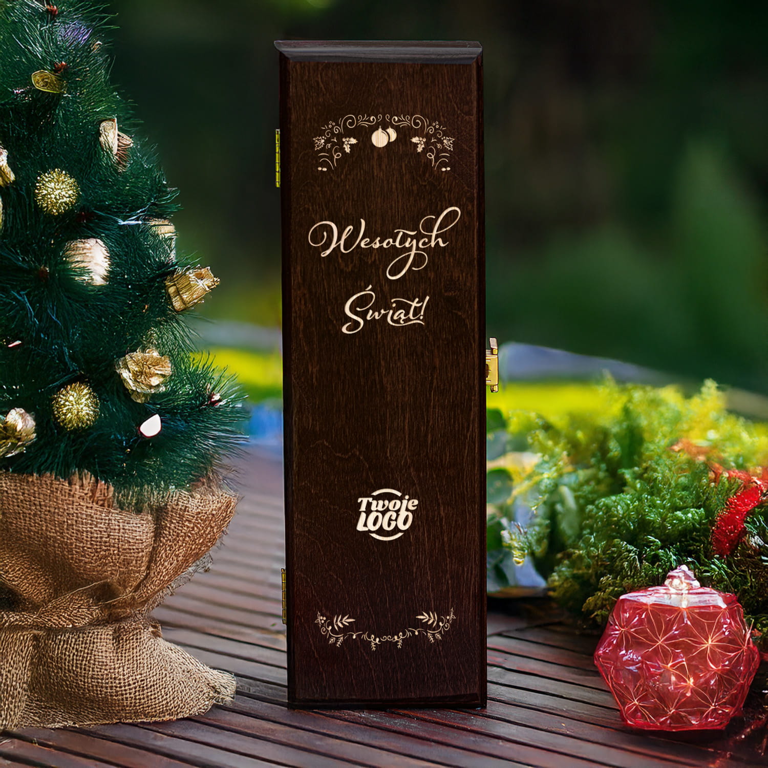 Skrzynka na Wino z Logo - Prezent na Święta dla Firm - Prezent Świąteczny z Logo - Wesołych Świąt - Brązowa