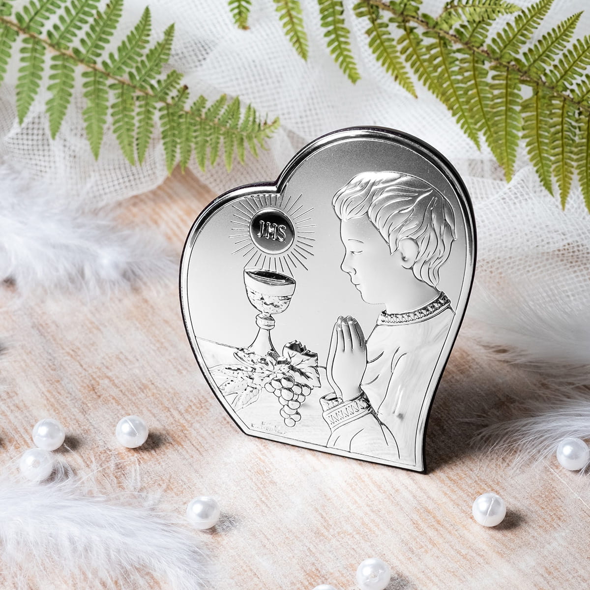 Srebrny Obrazek z Grawerem - Pamiątka Pierwszej Komunii Świętej dla Chłopca