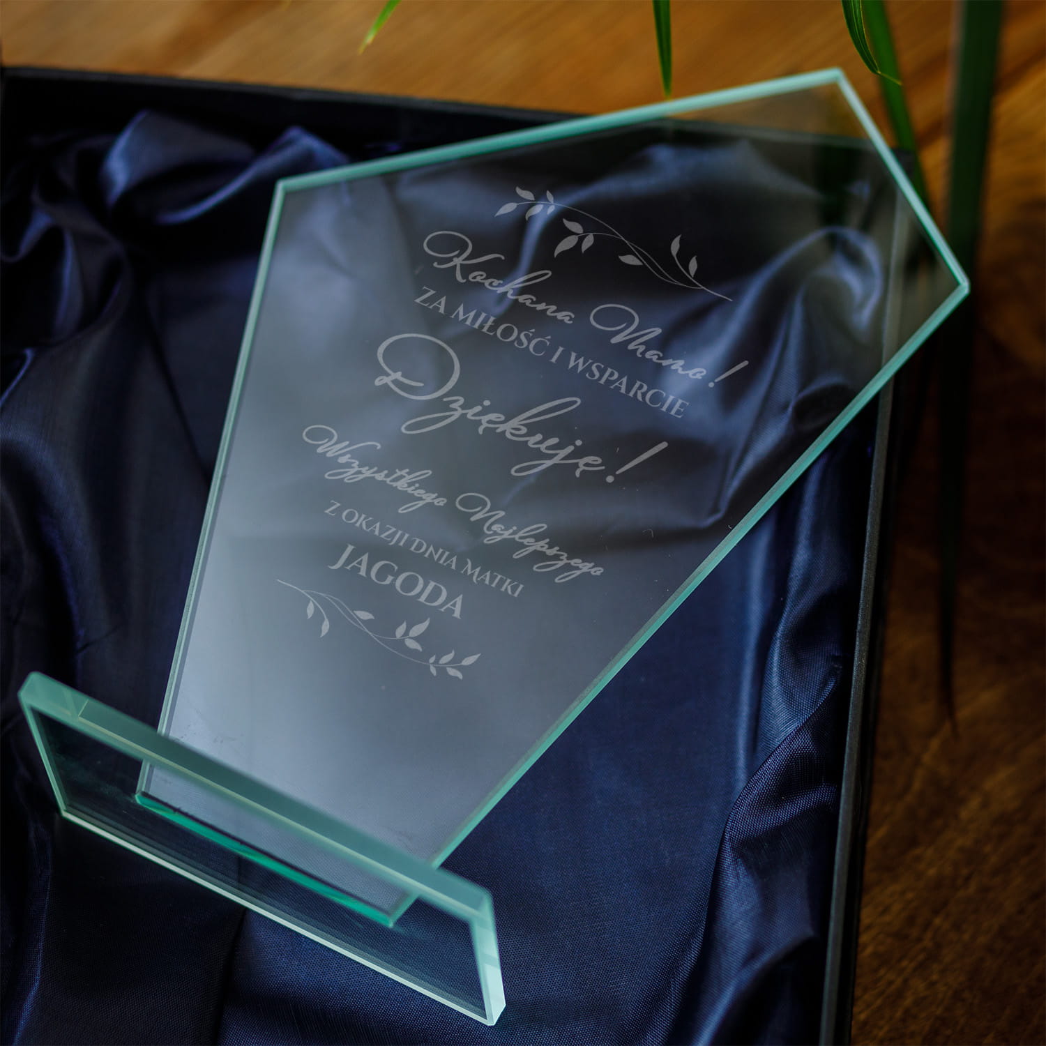 SZKLANA STATUETKA Z GRAWEREM - ELEGANCKI PREZENT NA DZIEŃ MATKI