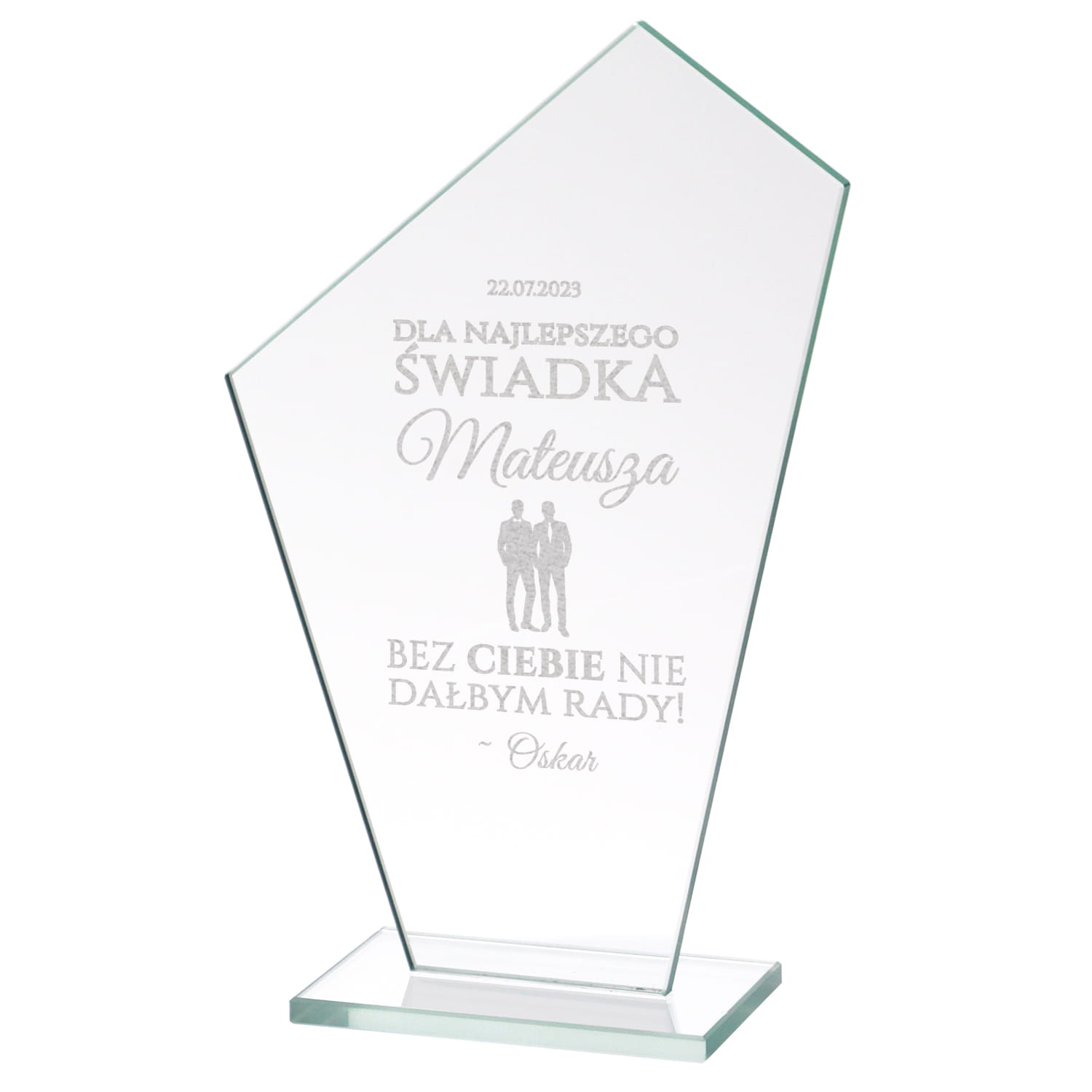 ⭐⭐ SZKLANA STATUETKA Z GRAWEREM - ELEGANCKI PREZENT PODZIĘKOWANIE DLA ŚWIADKA ⭐⭐