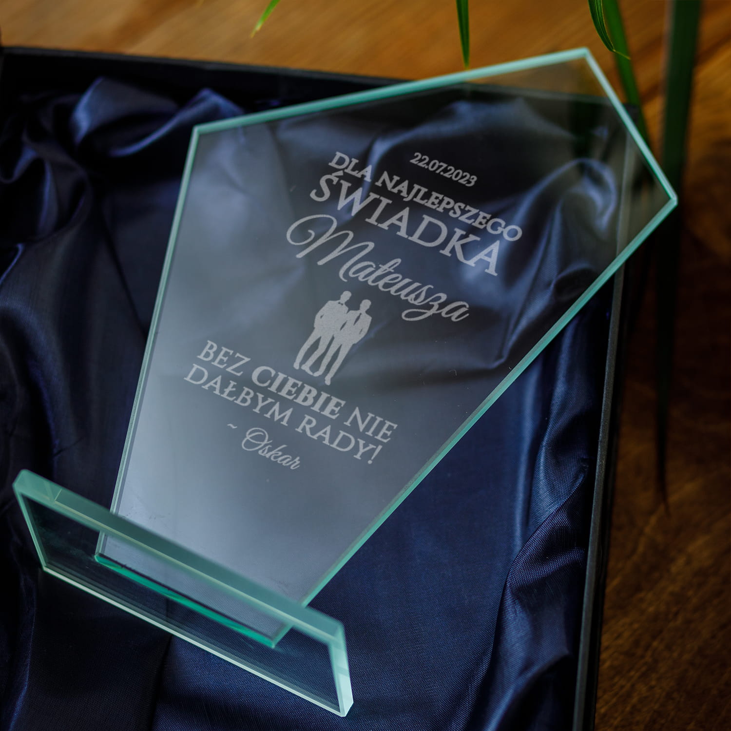 ✨ Szklana statuetka z grawerem na pewno wprawi w osłupienie każdą obdarowaną osobę. Dzięki niej Twój Świadek poczuje się naprawdę wyjątkowo.