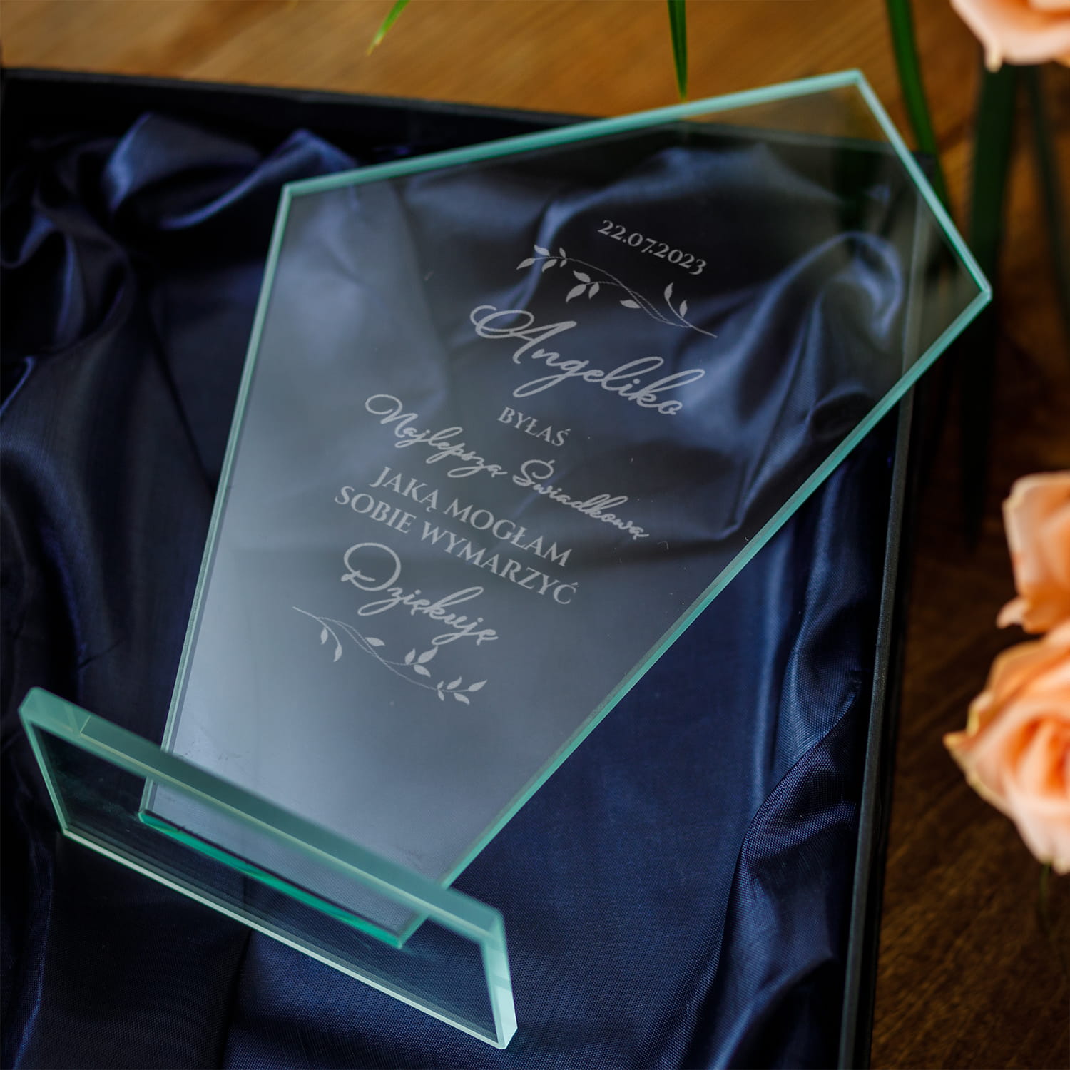 ✨ Szklana statuetka z grawerem na pewno wprawi w osłupienie każdą obdarowaną osobę. Dzięki niej Twoja Świadkowa poczuje się naprawdę wyjątkowo.