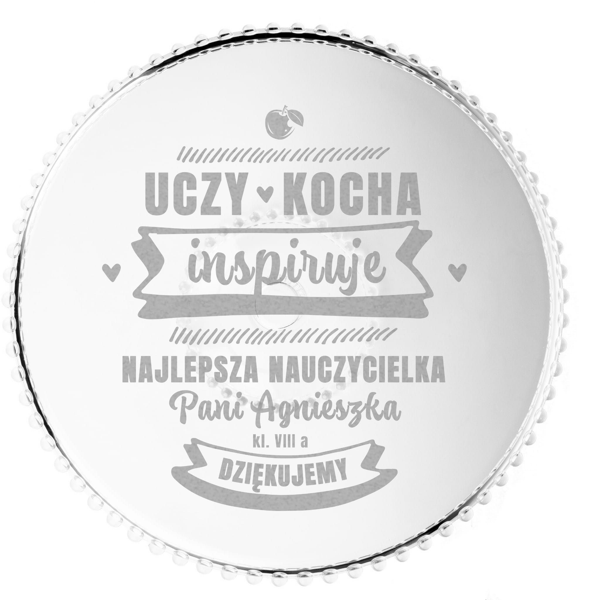 Szklana Patera na Ciasto Tort z Grawerem dla Nauczyciela - Prezent na Dzień Nauczyciela - Uczy Kocha Inspiruje