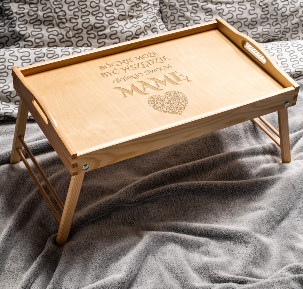 Twoja mama będzie mogła zjeść pyszne śniadanie w łóżku i poczuć się jak prawdziwa królowa. Taca śniadaniowa z grawerem posiada praktyczne uchwyty, dzięki czemu łatwo ją przenieść z kuchni do sypialni albo salonu. Składane nóżki pozwalają na szybkie rozłożenie jej w każdym miejscu, a do tego są bardzo stabilne.