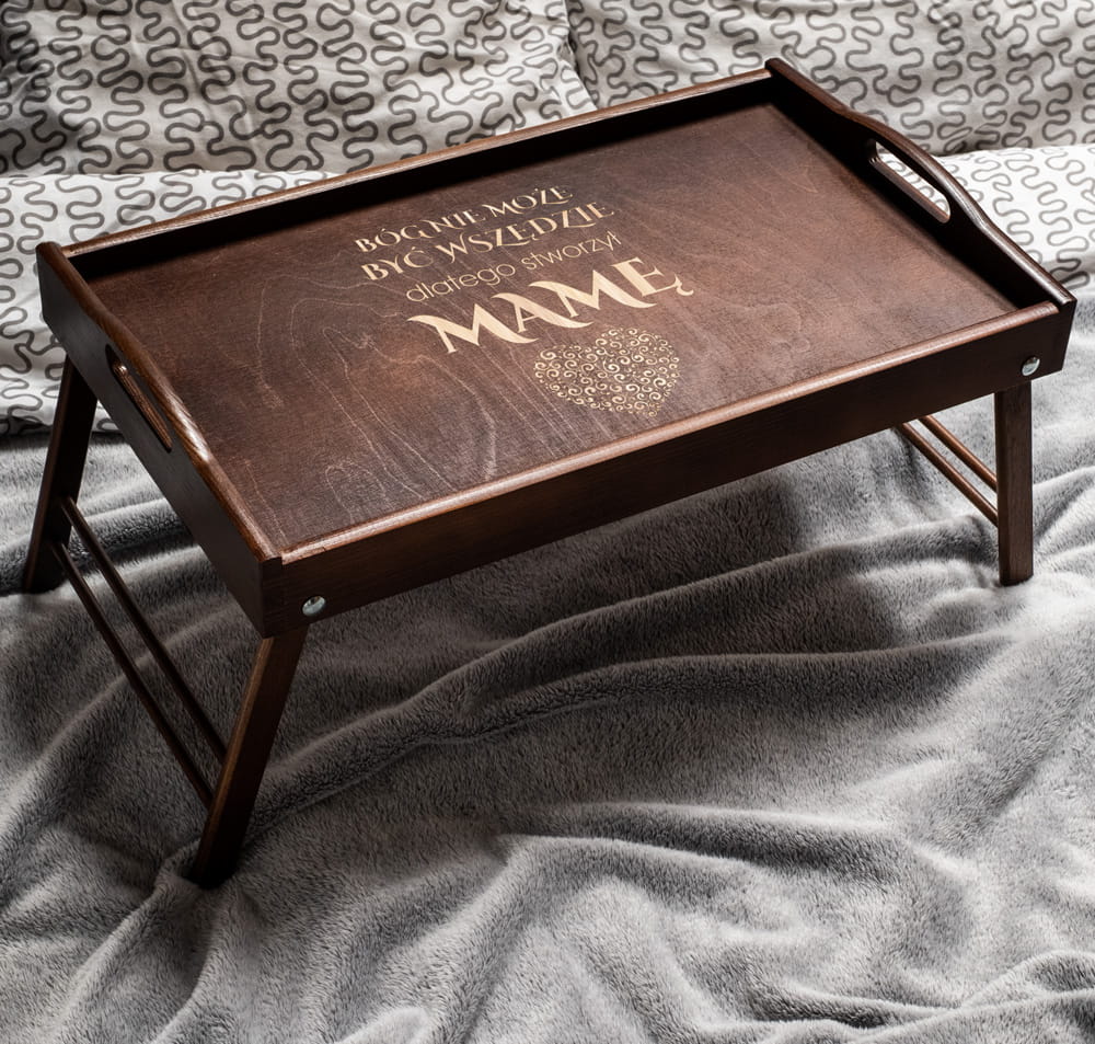 Twoja mama może także postawić ją w sypialni jako miejsce na świece zapachowe lub biżuterię. Taki prezent dla mamy ma bardzo wiele zastosowań: może służyć jako tradycyjna taca do serwowania albo jako stolik pod laptopa. Dzięki rozkładanemu stolikowi każde śniadanie może być wyjątkowe.