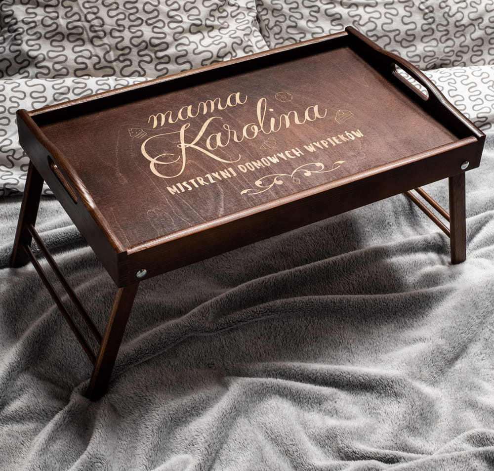 Taki prezent dla mamy ma bardzo wiele zastosowań: może służyć jako tradycyjna taca do serwowania albo jako stolik pod laptopa. Taca na śniadanie łączy w sobie prostotę i elegancję i z pewnością przypadnie do gustu każdej mamie. Taca śniadaniowa z grawerem posiada praktyczne uchwyty, dzięki czemu łatwo ją przenieść z kuchni do sypialni albo salonu.